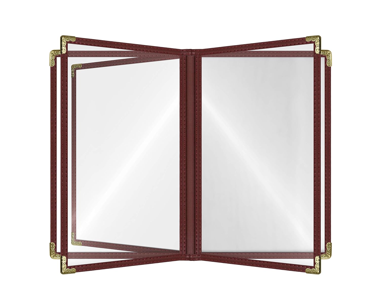 - ✅Sophisticated Burgundy Aesthetic: Designed with a deep burgundy trim and elegant gold decorative corners, these menu covers exude a refined and professional appearance, making them perfect for fine dining establishments, cafes, or upscale bars.