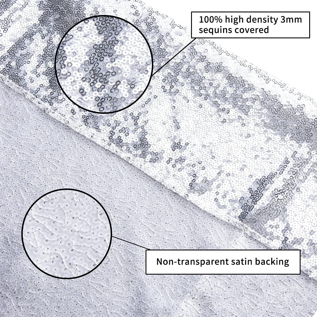 - 🌹【NOT SEE THROUGH SEQUIN BACKDROP】Package contains 1Pcs 8ft width by 8ft height silver satin sequin backdrop! The biggest highlight of this glitter backdrop is that its non-transparent property, the backing of this backdrop is cloth, not mesh, so lights will be blocked about 99%.