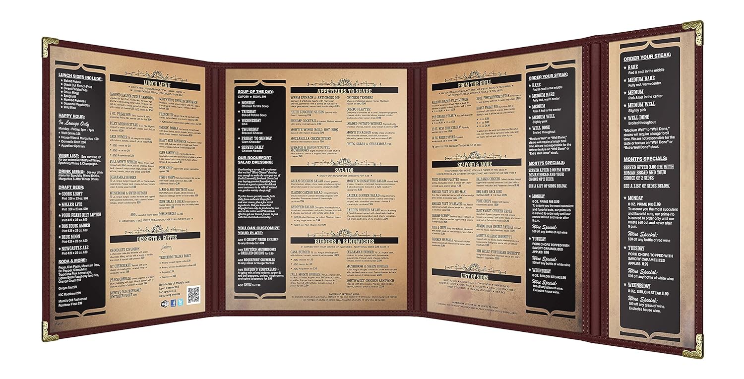 - ✅Gold Decorative Corners & Double-Stitched Edges: The gold decorative corners add a refined and upscale touch to the menu covers, enhancing their overall appearance. The double-stitched edges provide added durability, making these covers resistant to fraying and wear, ensuring they last for a long time while maintaining a polished look.