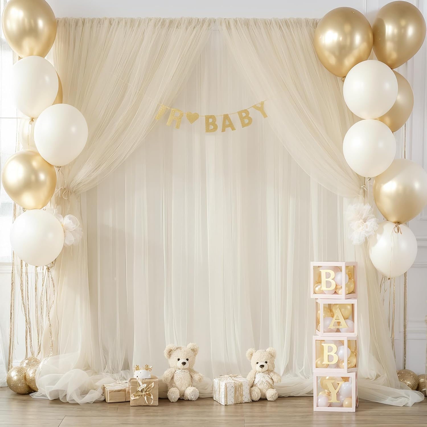 Champagne Sheer Backdrop Curtains for Parties Wedding Baby Shower Birthday Tulle Backdrop Drapes for Engagement Bridal Shower Christmas Photoshoot Background Decorations 10 ft X 10 ft, 2 Panels