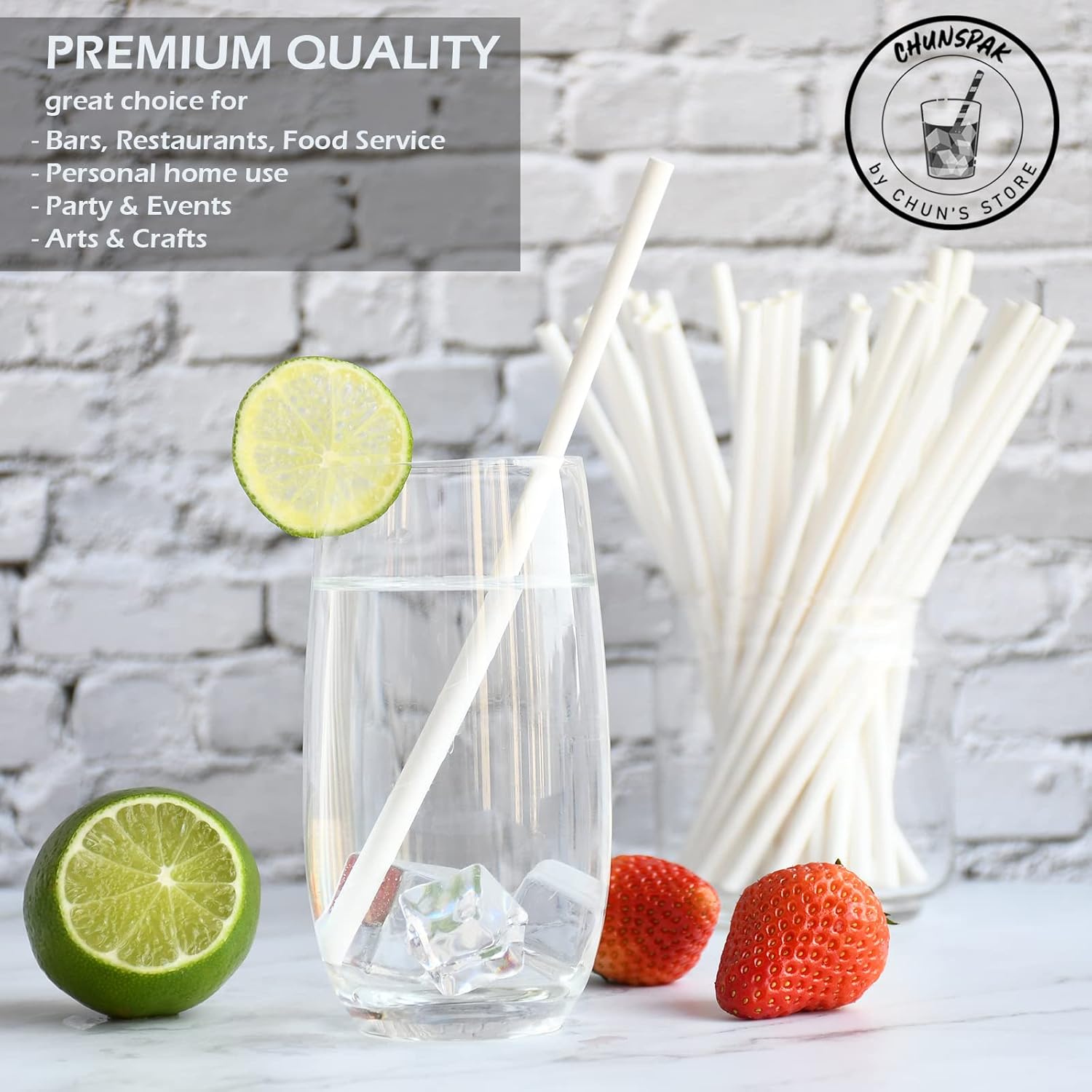 White Paper Drinking Straws Bulk, 1000 Counts, 7.75" Long, 0.24" Diameter - Restaurants and Bars Pack