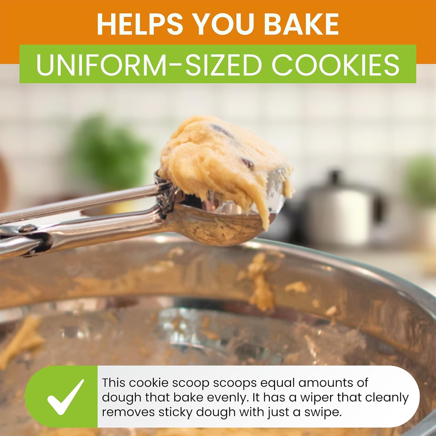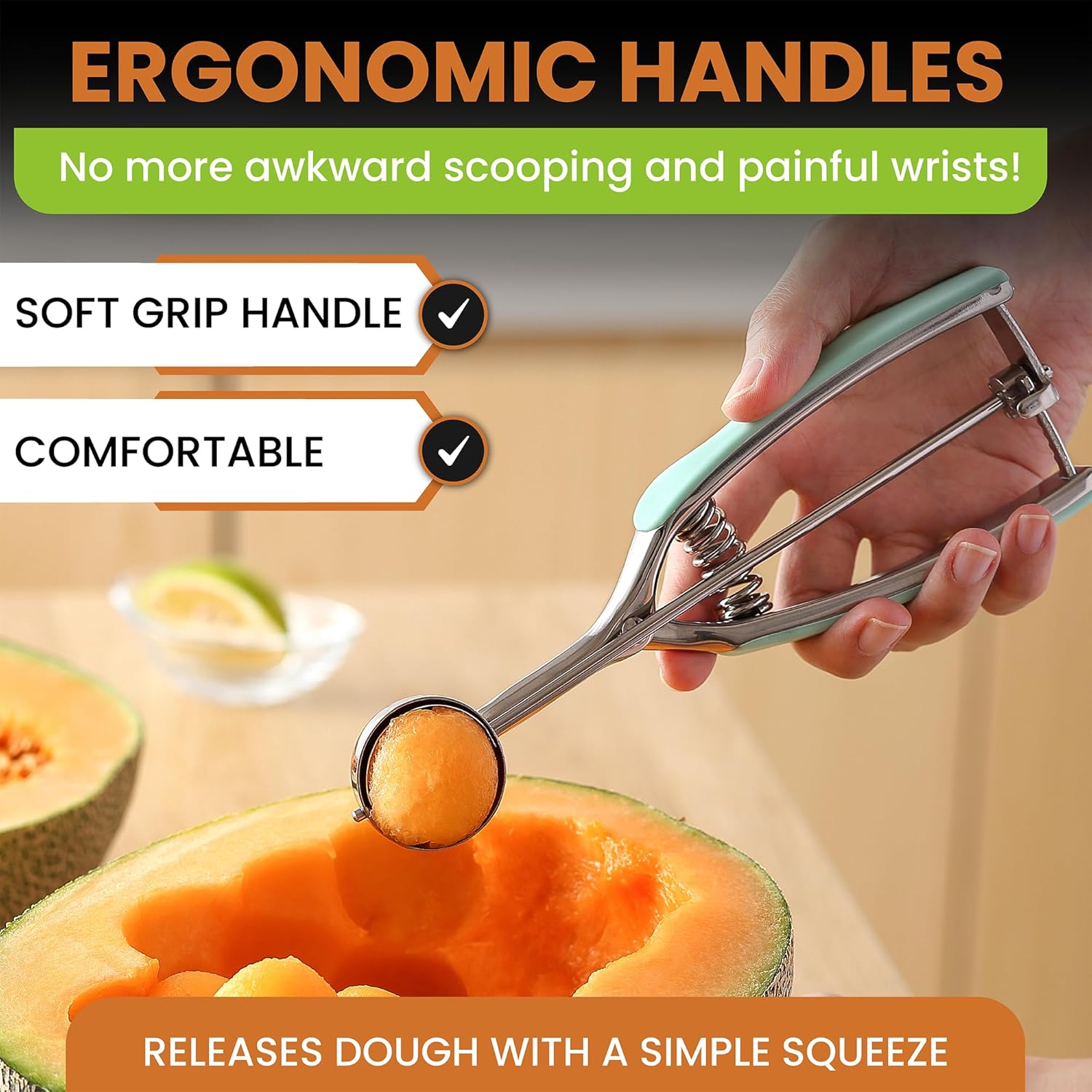 - Versatile Batter Scoop - This kitchen tool does more than scoop cookie dough. You can use it as cupcake scoop, protein balls scoop, meatballs scoop, melon baller scoop, ice cream scoop, sorbet scoop, muffin scoop, cake pop scoop and so much more!