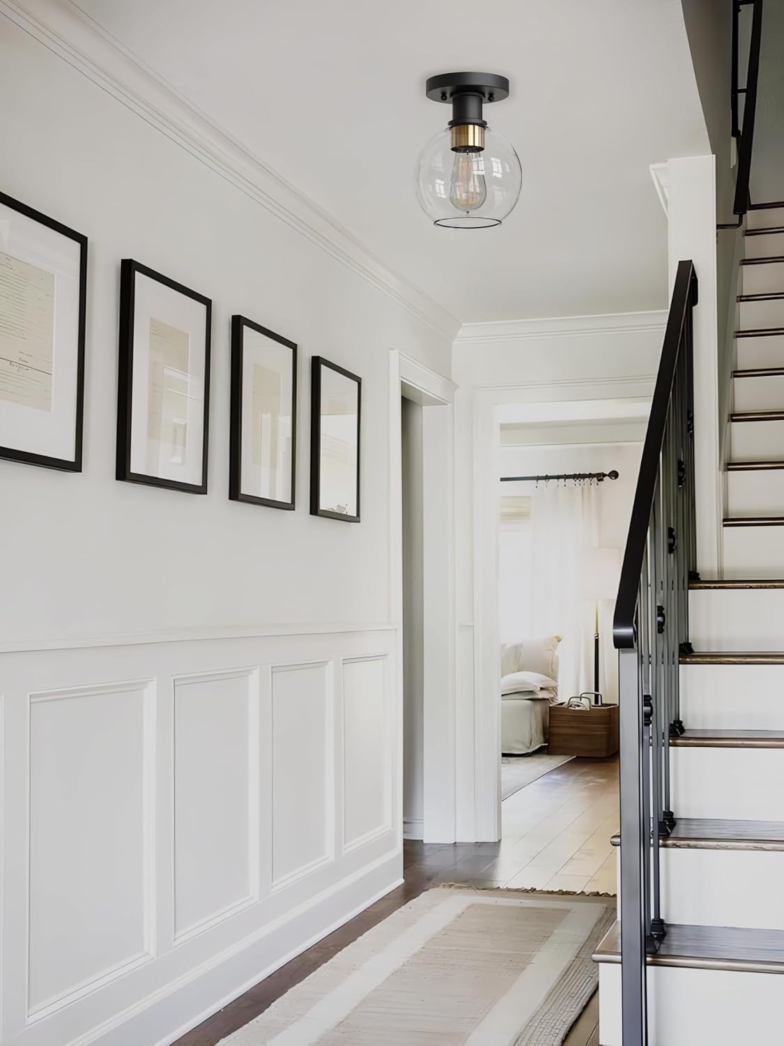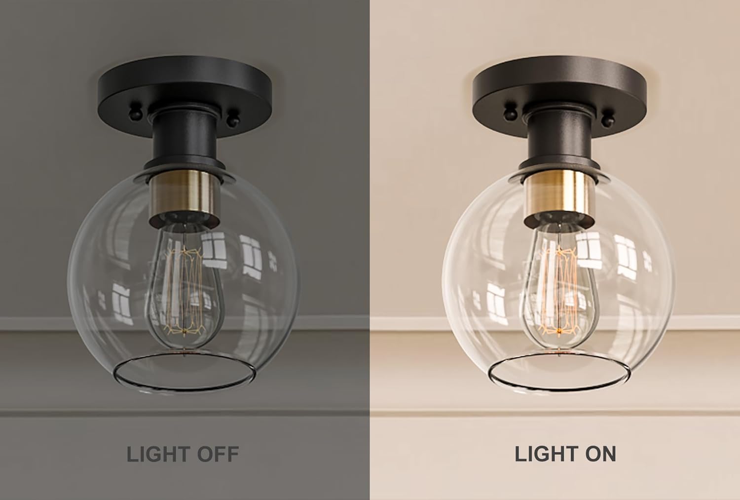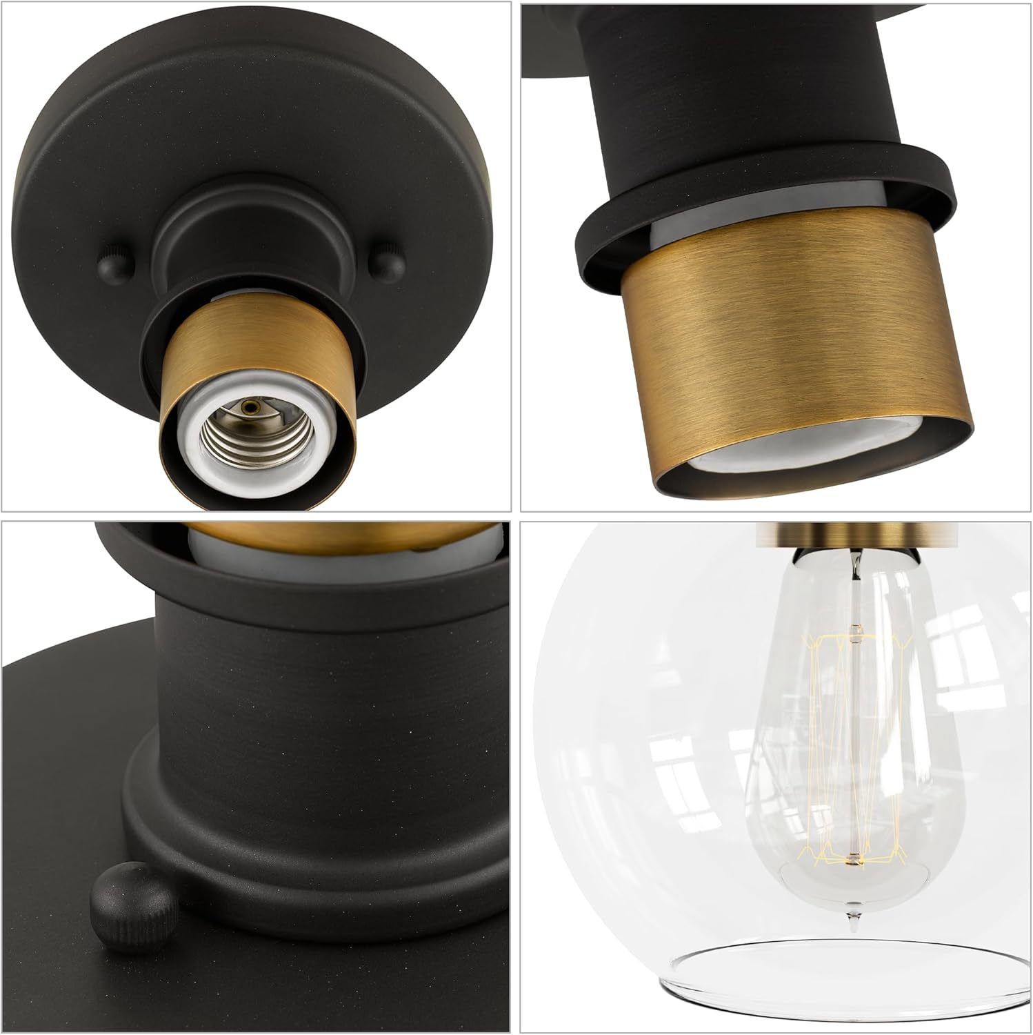 Dan Modern Farmhouse 1-Light Flush Mount Ceiling Light Clear Glass Globe Black Gold Finish for Hallway, Entryway, Passway, Bedroom, Garage, Kitchen, Balcony
