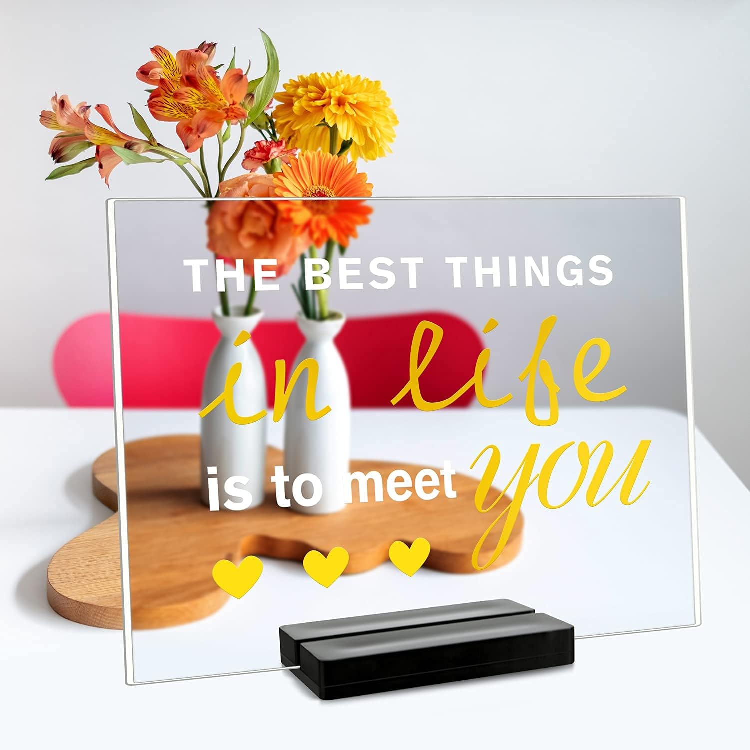 - Exquisite appearance: The noble black acrylic frame can accommodate 1/8 inch thick acrylic cardboard, which is very suitable for placing various table cards or wedding cards