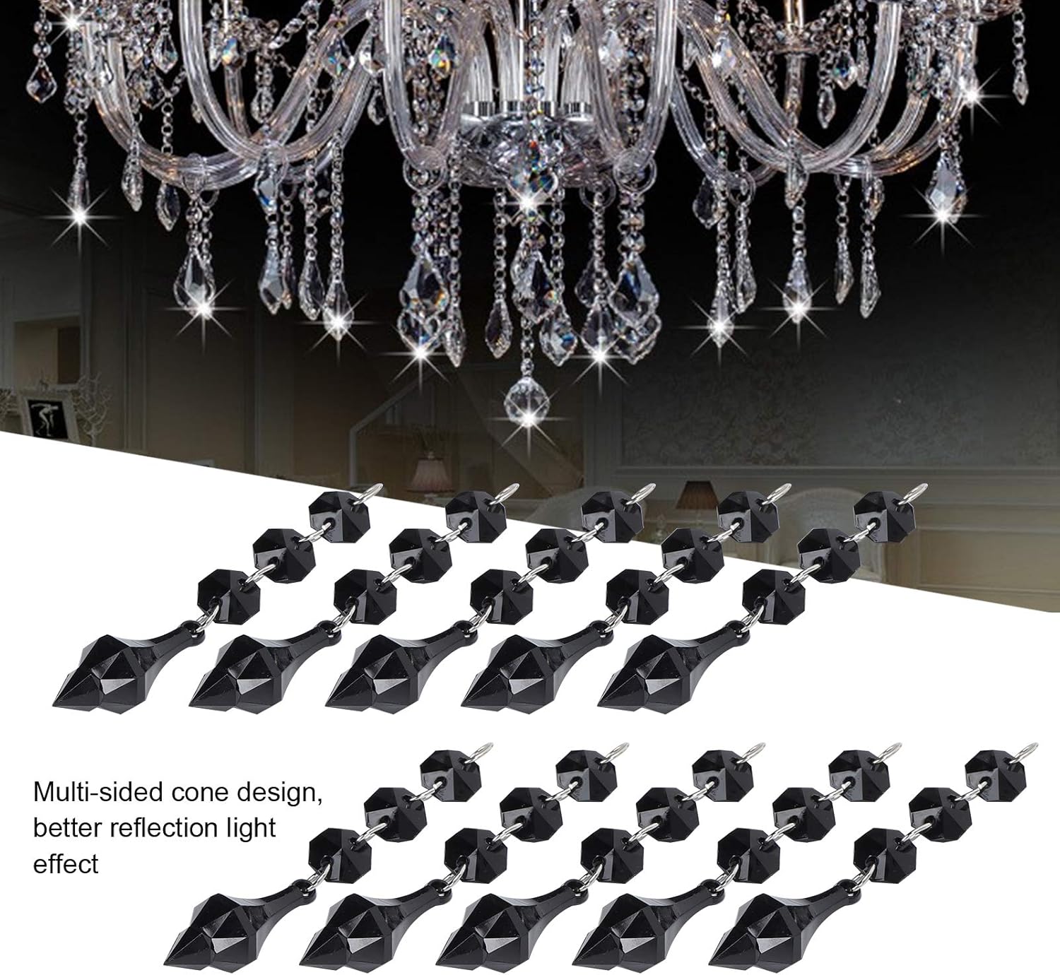 Buachois 10Pcs Clear Acrylic Crystal Ornament Beads Garland Chandelier Hanging Crystals for Wedding Party Celebration Christmas Tree Decor Black