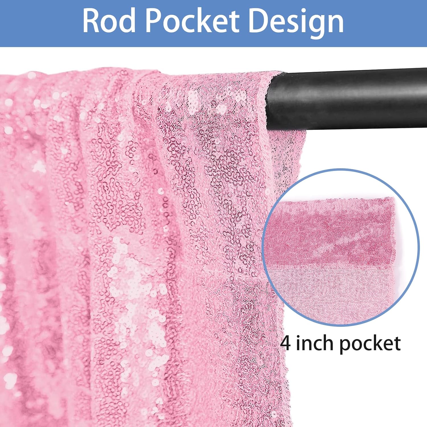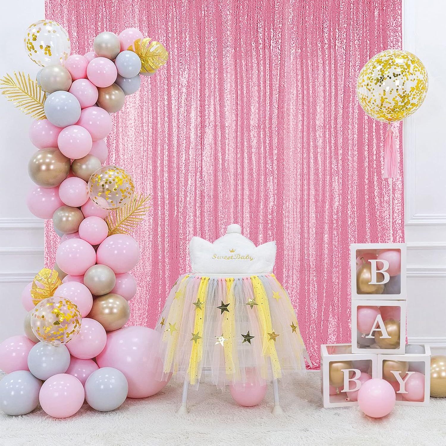 Hahuho Pink Sequin Backdrop Curtain, 2PCS 2FTx8FT Glitter Backdrop Curtain for Parties, Christmas, Wedding, Banquet Decoration(2 Panels, 2FT x 8FT, Pink)