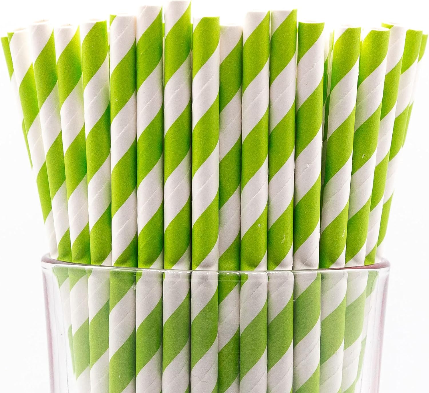 - Pack of 900 Green Swirls wrapped paper straws that are 7.75” long and have a diameter of 0.25”. Made with 4-ply paper which translates into thicker and more resilient straws that won’t wilt or change shape in both hot and cold drinks.