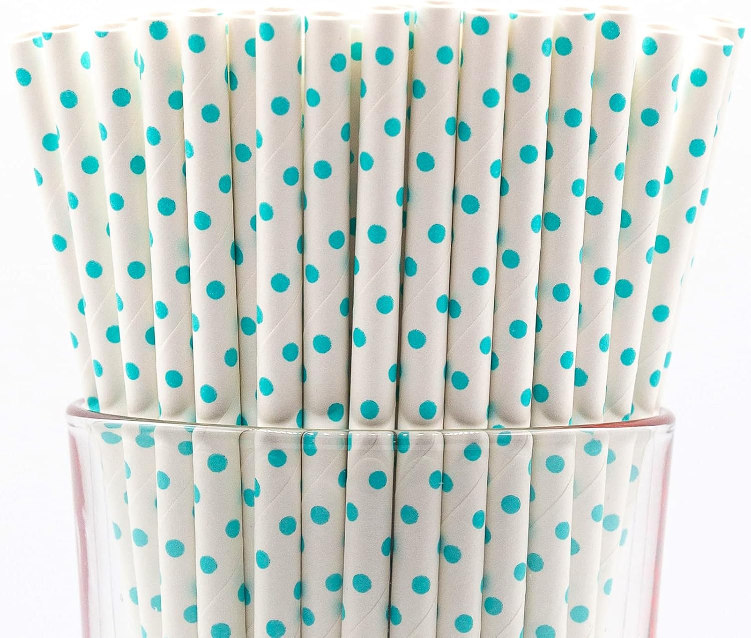 - Pack of 900 Teal Polka Dot wrapped paper straws that are 7.75” long and have a diameter of 0.25”. Made with 4-ply paper which translates into thicker and more resilient straws that won’t wilt or change shape in both hot and cold drinks.