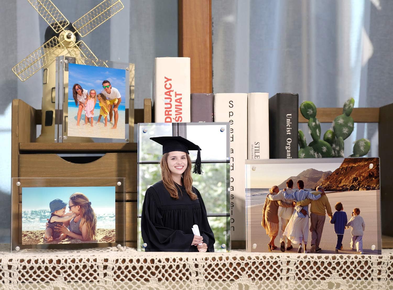 - UV Protection: All HELPLEX acrylic frames are made with anti-UV acrylic panels, which effectively protect photos and greatly slow down the aging and fading process of the pictures.
