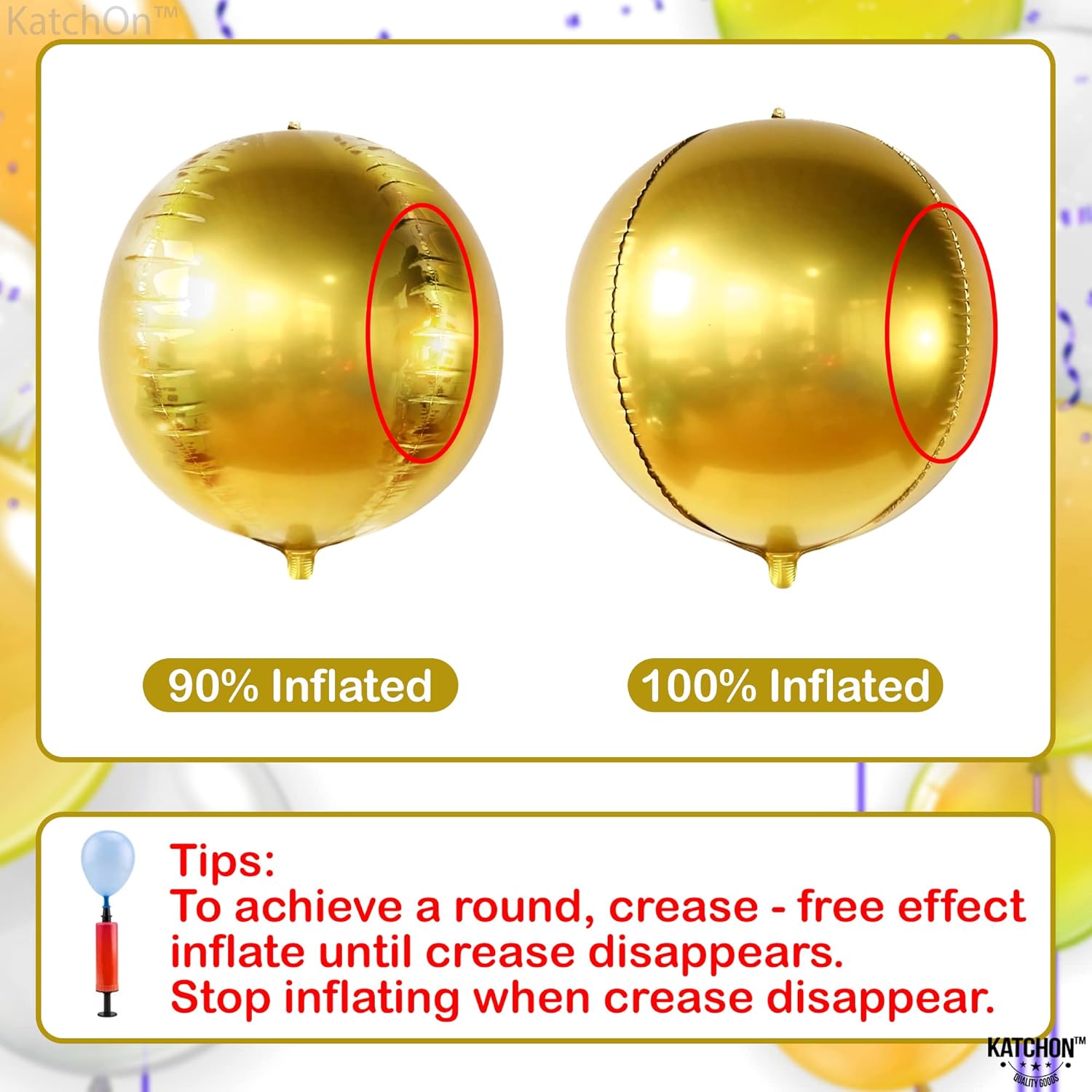 - REUSABLE | STURDY | DURABLE - These big gold balloons, graduation foil balloons are made from the grade "A" quality foil material making it not just beautiful but re-usable, durable and sturdy. You can use these 4D gold balloons for oscar themed decorations, hollywood party decorations, globos dorados metalicos for golden decorations. Combine red and gold mylar balloons to make an arch that is ideal for gold party decorations, gold sphere balloons for black and gold happy birthday decorations, graduation backdrop for graduation decorations, graduation balloons arch kit decorations.