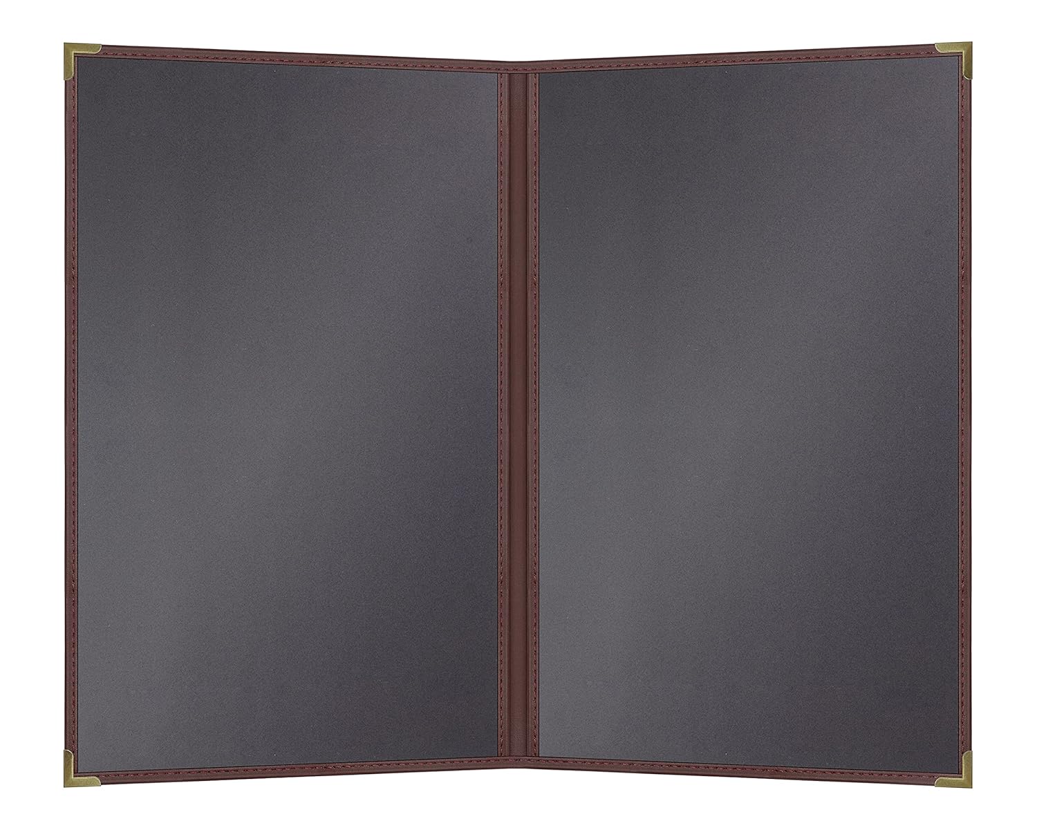 Goodsmart Pajco Style Restaurant Menu Covers – Pack of 10, Side-Loading Menu Holders, Single Stitched Edge, Clear Vinyl Menu Sleeves, Leatherette Trim, Gold Corners, Burgundy, 2 View (8.5" x 14")