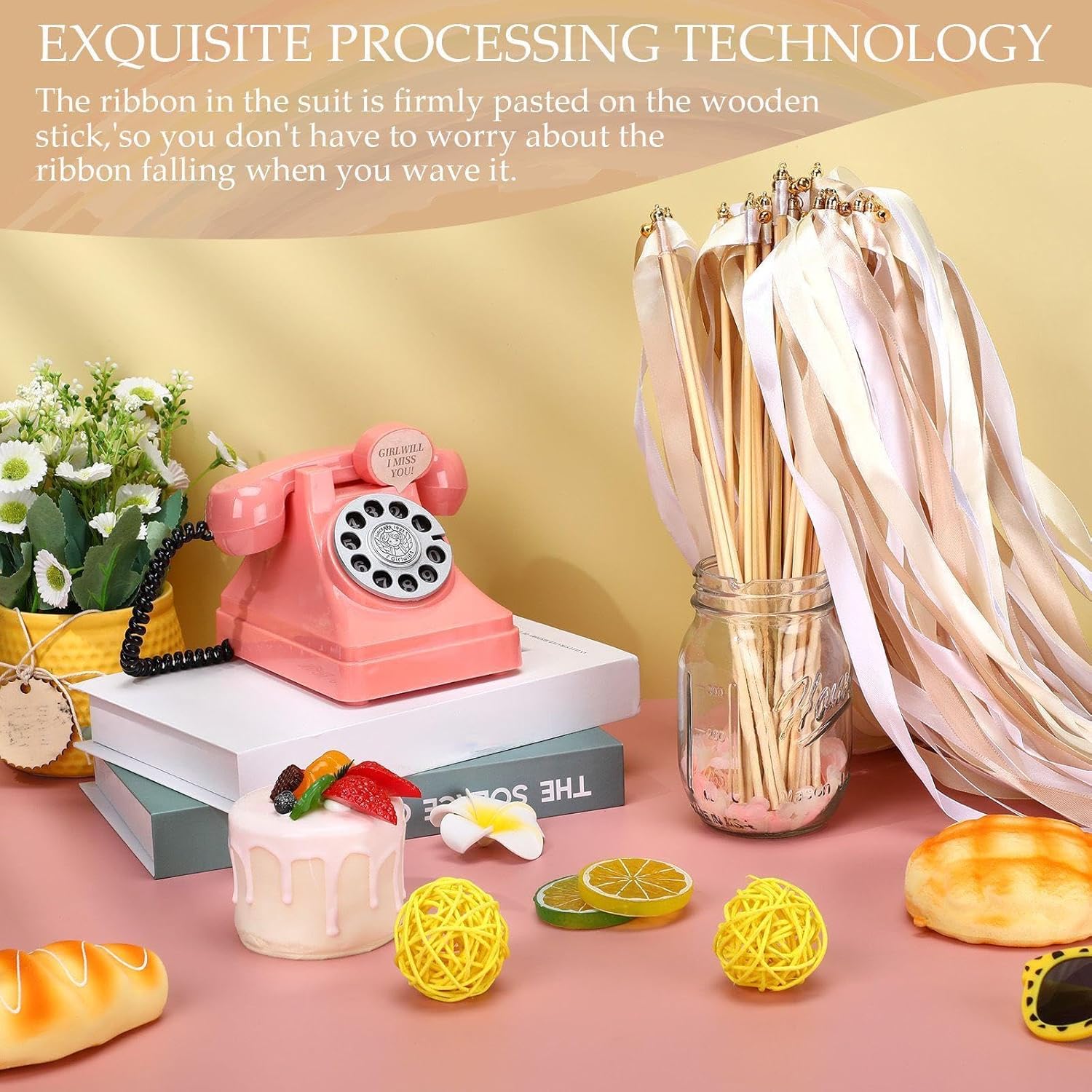 - Sizes: the length of stick is approx. 30 cm/ 12 inches; Ribbons length is 50 - 60 cm/ 20 - 24 inches, 1.6 cm/ 0.6 inches in width; Warm note: please store them in dry place