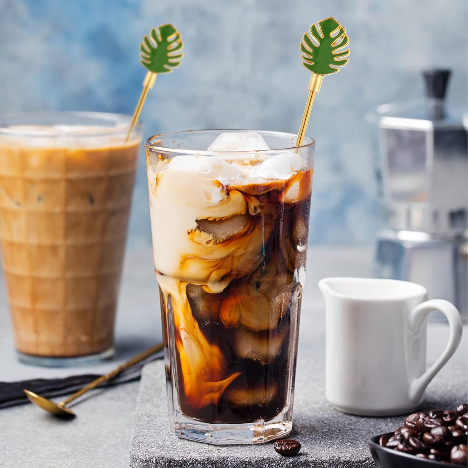 Palm leaf Drink Stirrer Sticks Stainless Steel Coffee Beverage Stirrers,Set of 4 Cocktail Swizzle Stick,7.5", Multicolor