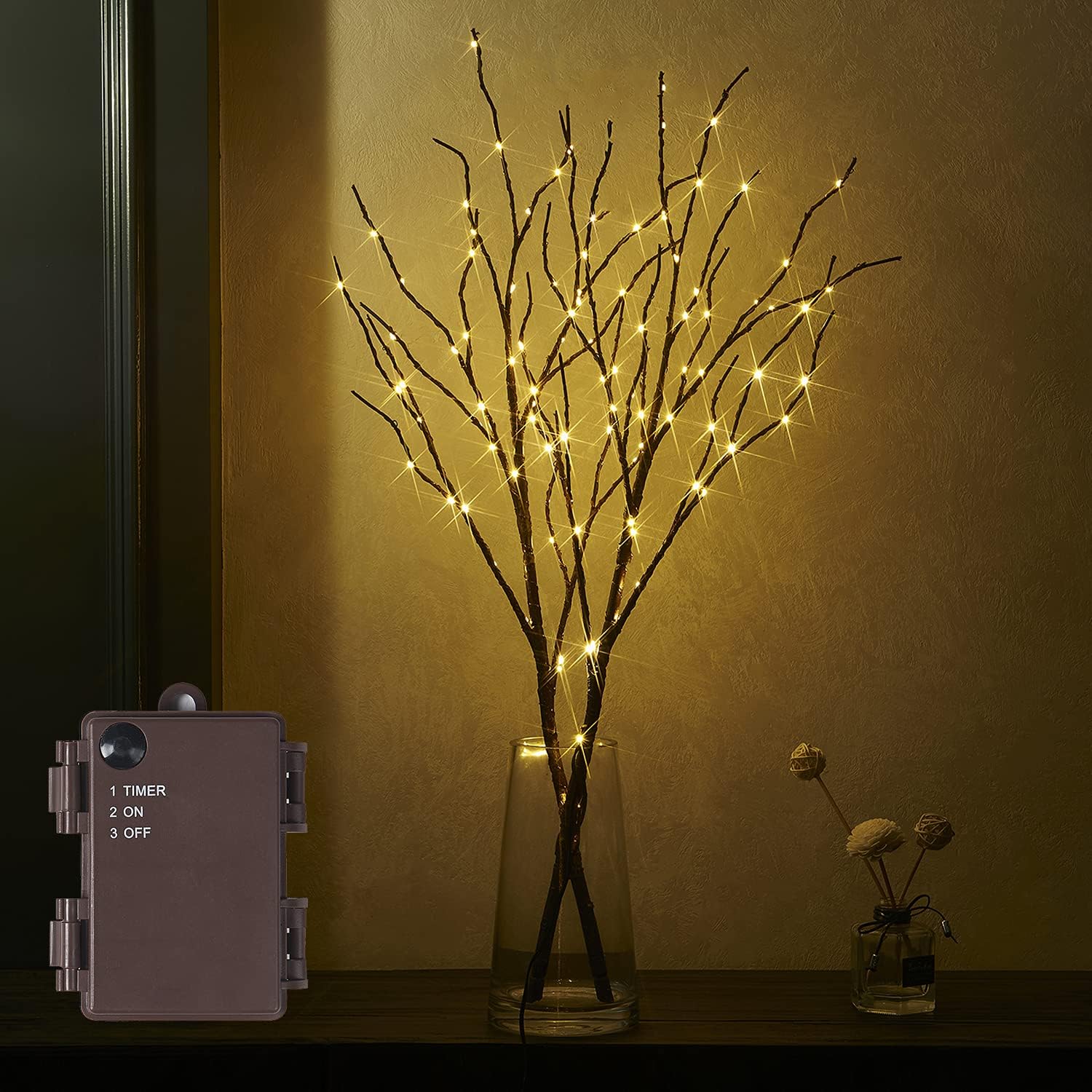 - 🎄【Branch lights with timer】Battery operated and built in timer function which allows lighting up for 6 hours every day at the same time.