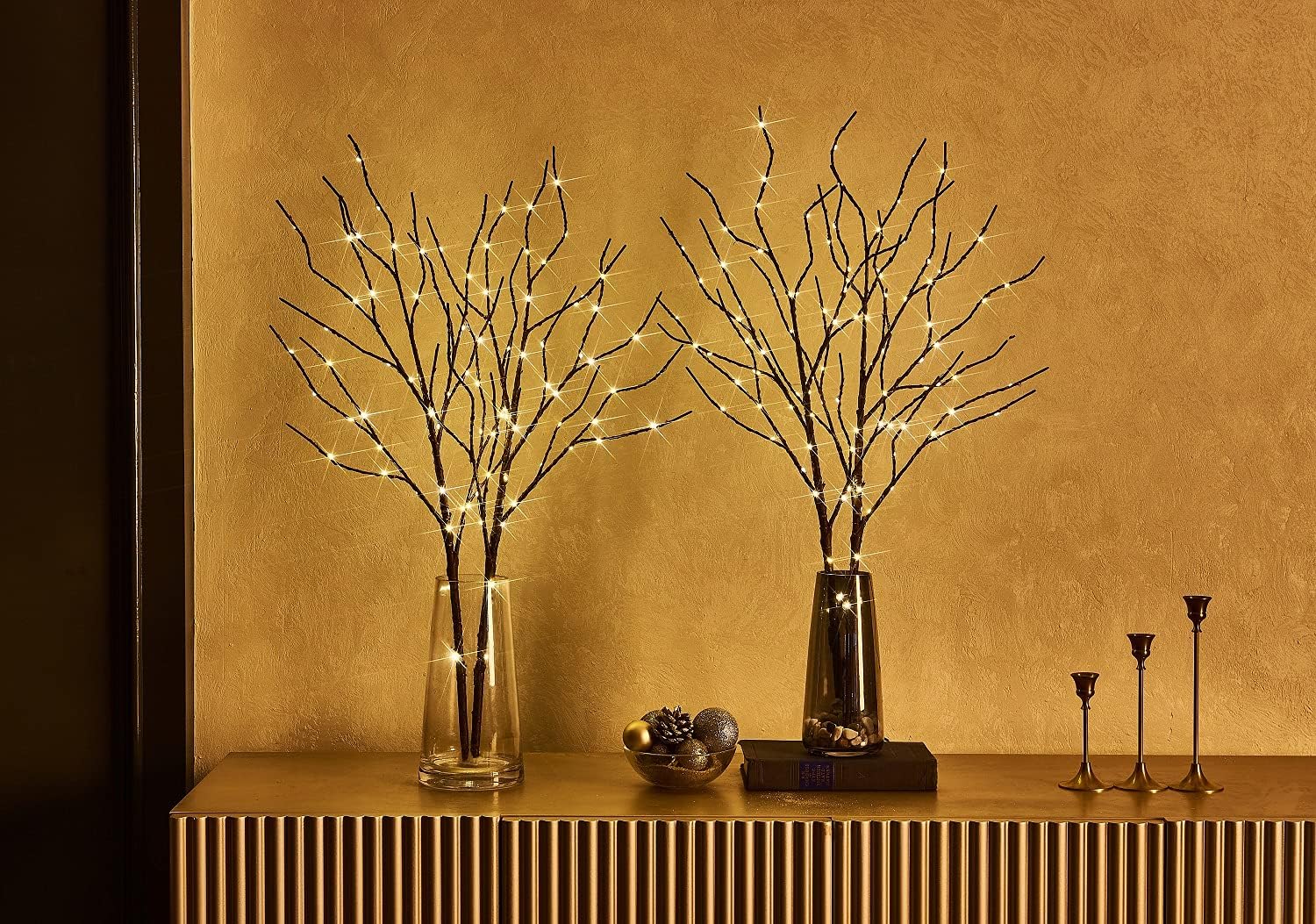 - 🎄【Artificial branch stems】The lighted branches covered with vivid brown tree bark texture are perfect centerpieces for wedding, party, Christmas decor.