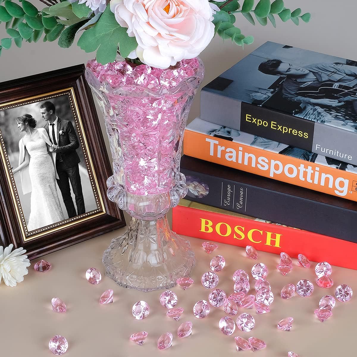 Acrylic Diamond Fake Gems Vase Filler, Babenest 240pcs 3/4 Inch Faux Diamonds Crystals Jewels for Table Scatters Wedding Party Event Arts & Crafts Birthday Decoration Favor (Pink)