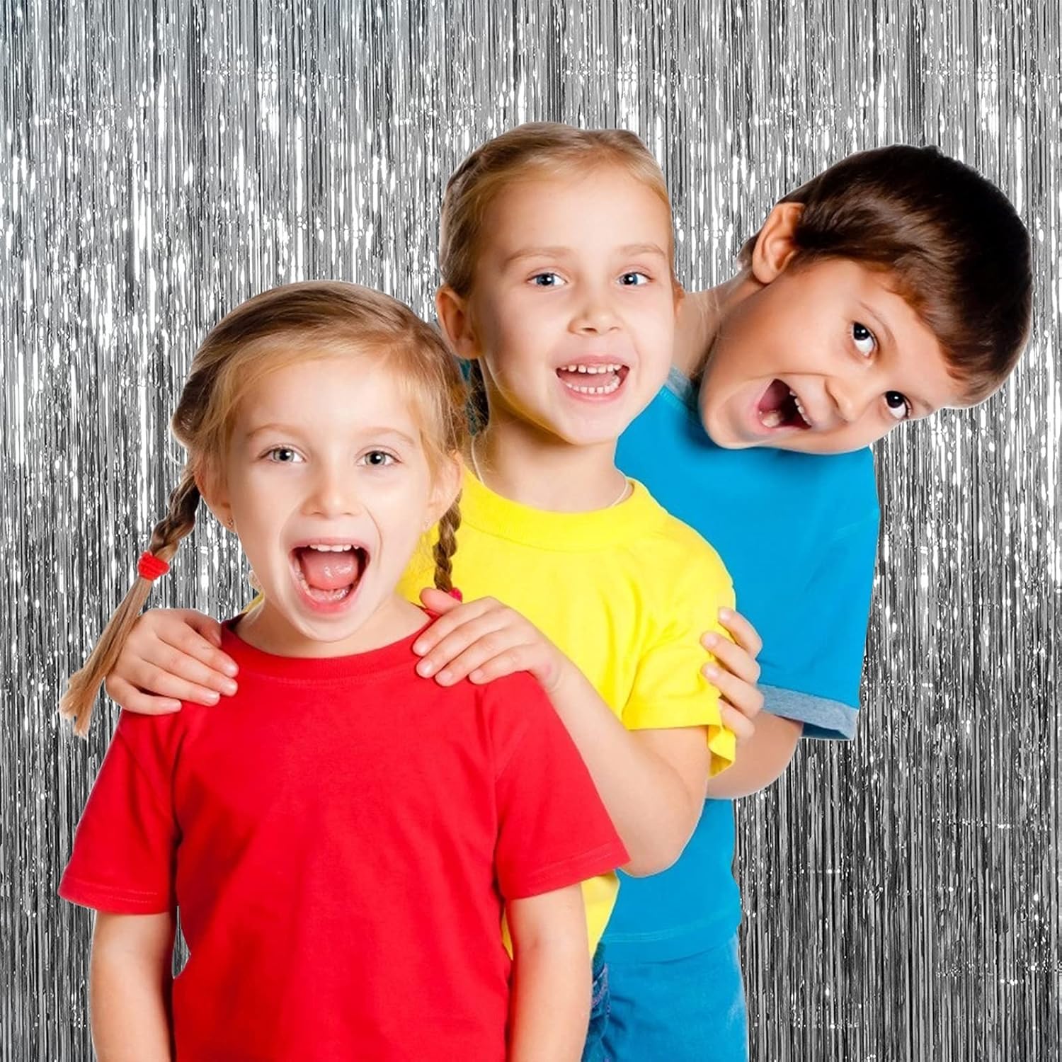 - Foil Fringe Backdrop Silver: 5Packs/Set, enough quantity for your party decoration. Each pack curtains size is 3.28 ft x 6.56 ft, enough length for decorate your party. Perfect accessories for decorating doors and walls.