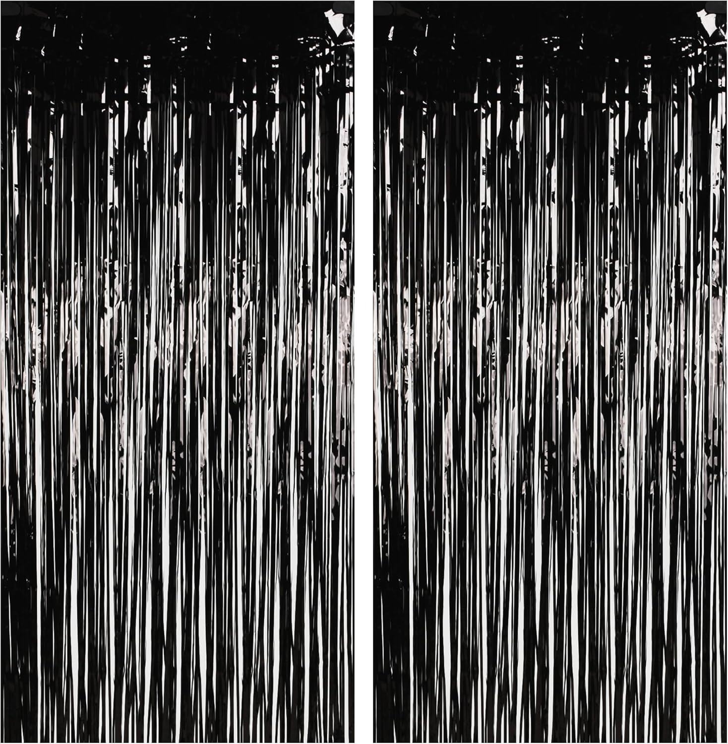 - Package Included: 2 Pack Foil Tassel Party Curtain Backdrops. If you want to make your tinsel backdrop curtain fuller and thicker, you can overlap two foil curtains.