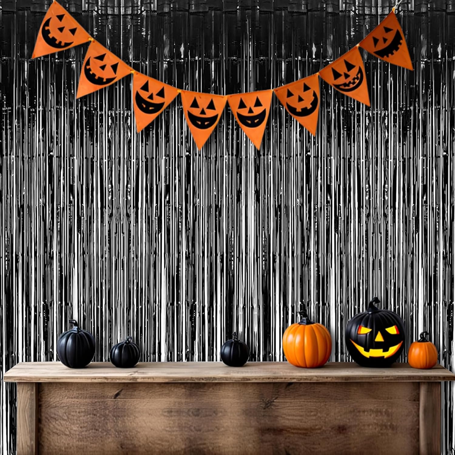 Foil Fringe Curtain Halloweens Party Decorations - Pure Black Tinsel Photo Backdrop Party Steamers Curtains for Birthdays Music Christmas Stranger Theme Parties