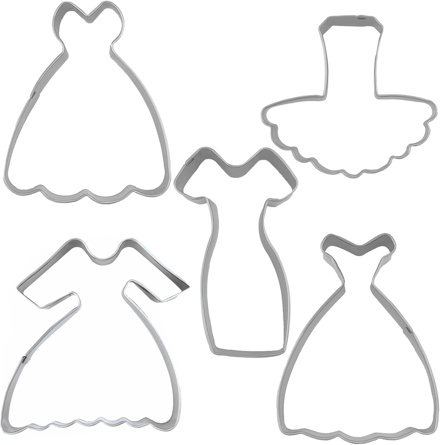 - ★【5 PCS OF DRESS COOKIE CUTTER SET】 - Stainless steel dress cookie DIY molds set, 5 different dress shapes cookie cutting molds for holiday, wedding, birthday party, Christmas cooking tool, reusable and durable. Have fun to making cookie with families together.