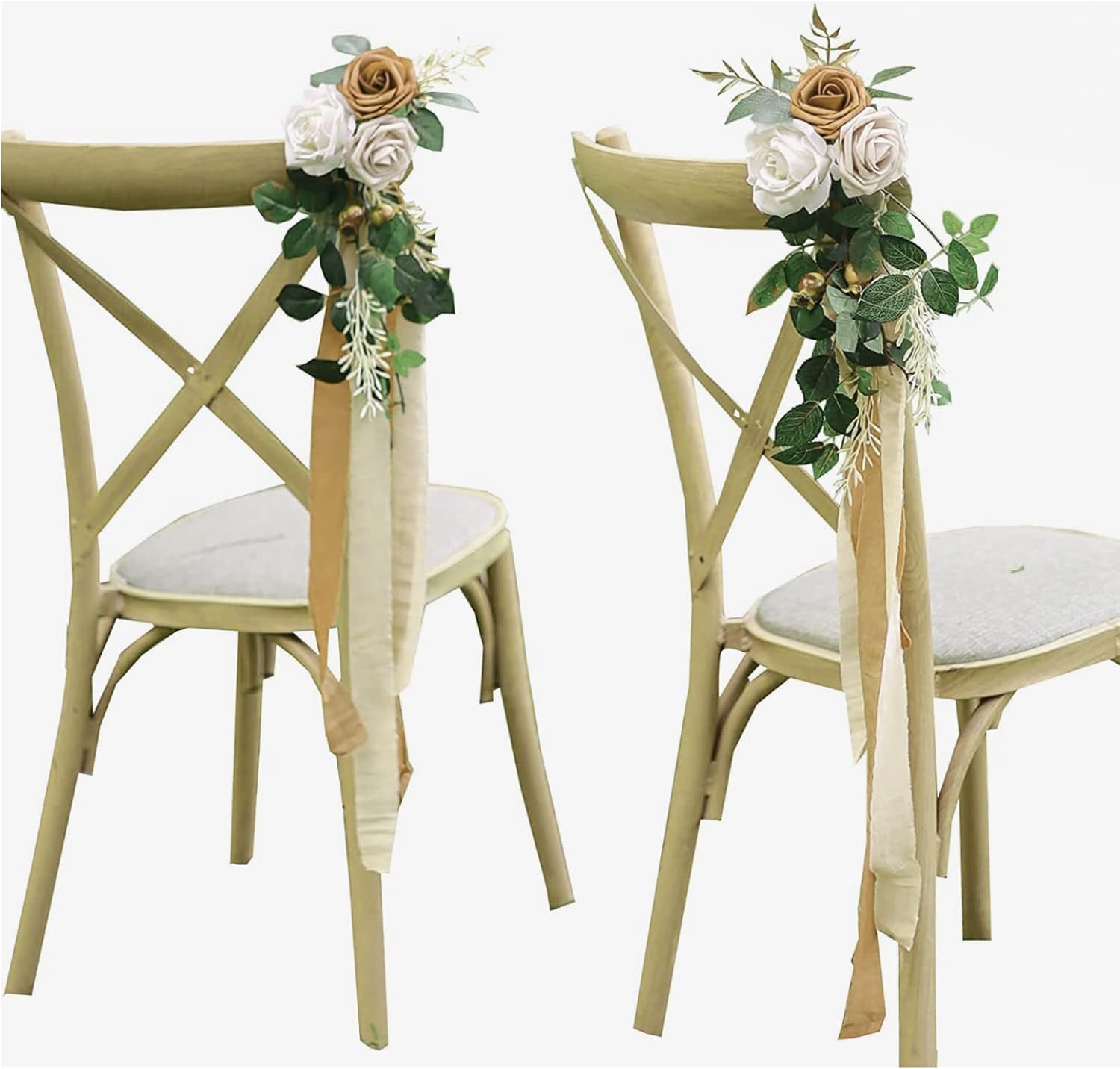 Lookein Set of 8 Pew Flowers for Wedding Ceremony Chair Decorations Bench Decoration Wedding Aisle Chair Decoration, Light Brown