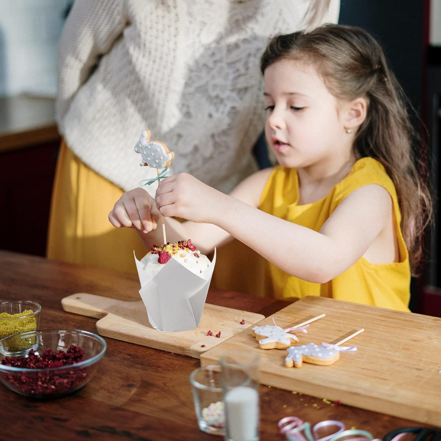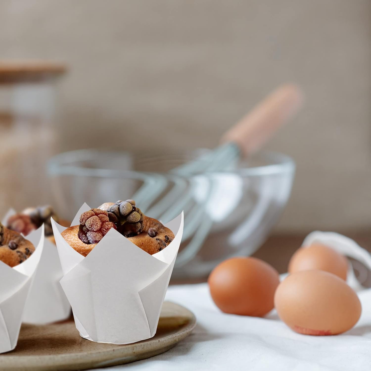 - PREMIUM QUALITY MATERIAL: These cupcake wrappers are made from high-quality greaseproof paper, well made, convenient, and stylish tulip bake cups are approved for baking in conventional ovens up to 425 degrees Fahrenheit;