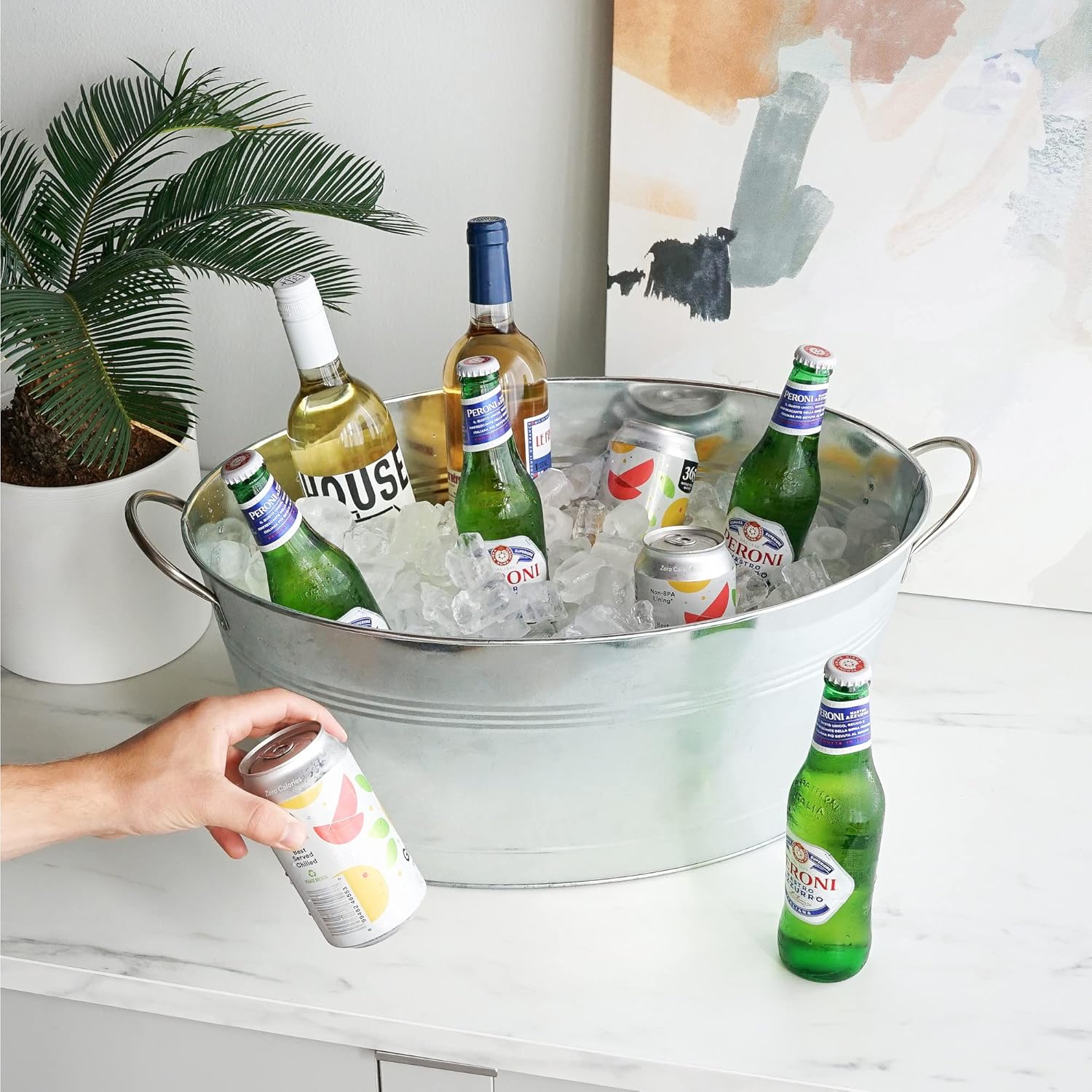 - HANDLES FOR EASY TRANSPORT - Our oval galvanized steel tub features sturdy handles, making it a breeze to move around. This large beverage tub is a must-have for backyard barbecues, perfect for serving a large selection of chilled beverages.
