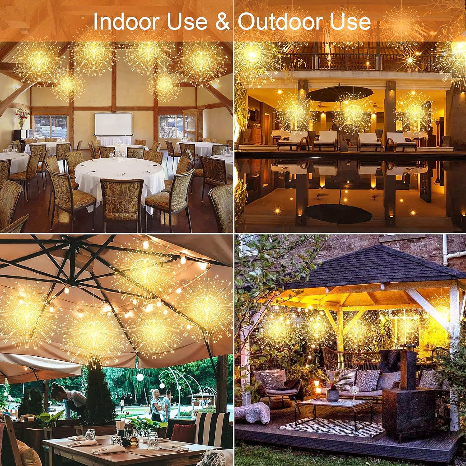 - DIY copper wire lights: flexible copper wire, copper wire fairy lights is easy to bend into any shape you want, such as bouquets, stars, fireworks, trees, etc. Bursting Star String Lights are ideal for decorations such as gardens,roofs, lawns, fences, weddings, birthdays, parties, Christmas, indoor and outdoor etc