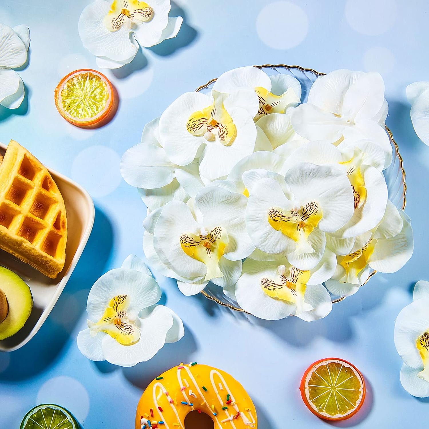 - Faux orchid heads flowers set: the package comes with 40 pieces of faux silk phalaenopsis flower heads available, realistic shapes and bright colors, enough quantity and classic styles to meet your needs for use or decoration