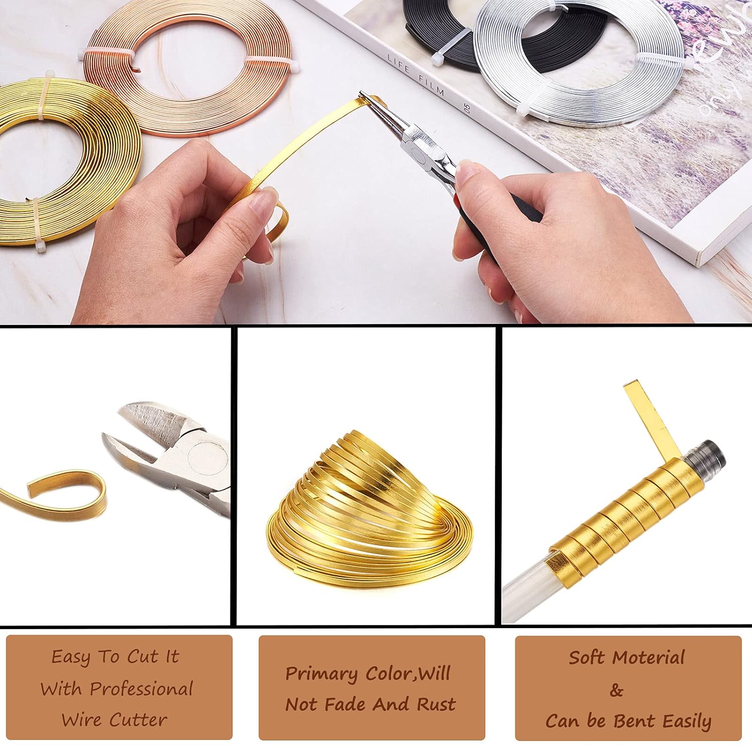 Fashewelry 65Ft 4 Colors Aluminum Flat Wire 3mm Wide Bendable Metal Craft Wire Strip 18 Gauge with Side Cutting Plier for Bezel Sculpting Armature Jewelry Making Gem Metal Wrap
