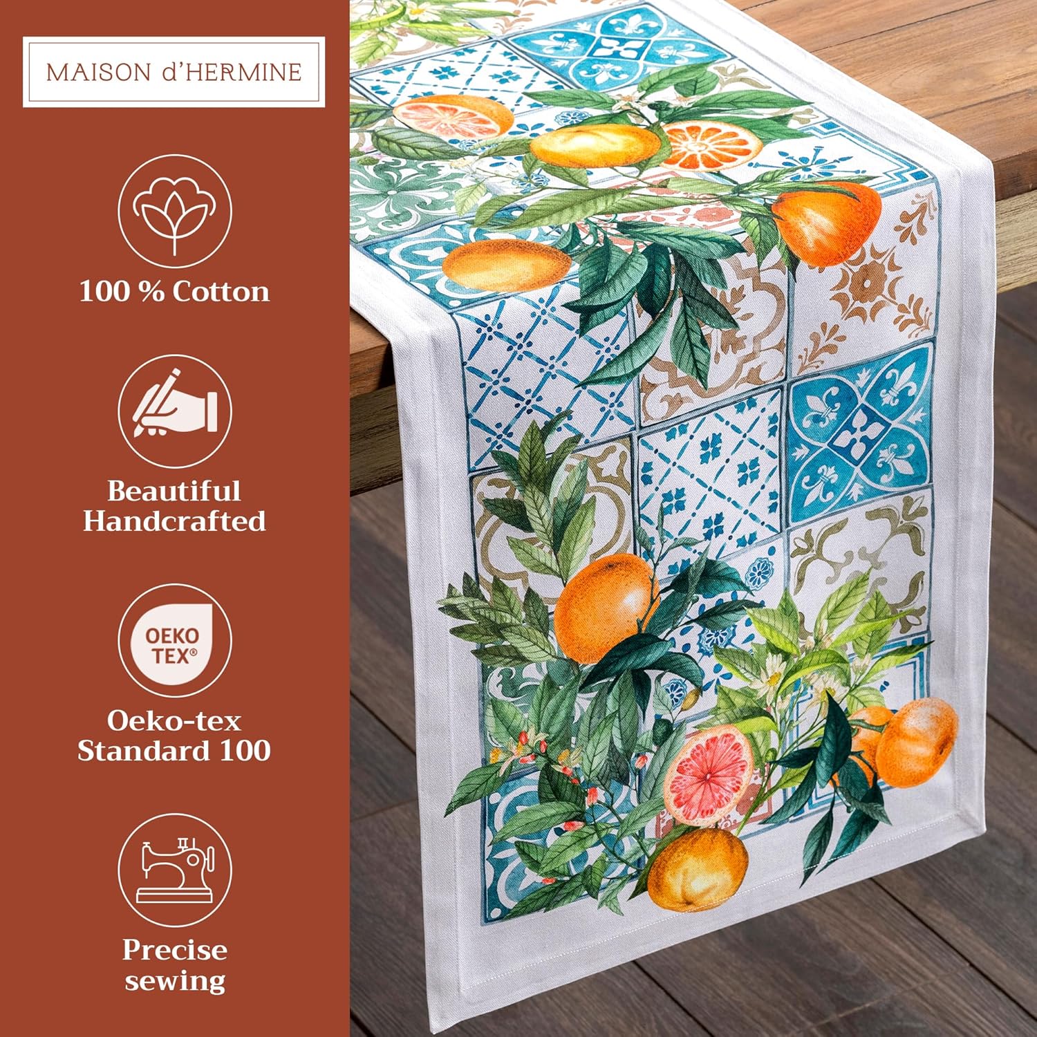 Maison d' Hermine Table Runner 100% Cotton Single Layer Table Runners 72 inches Long Decorative for Home Kitchen Dining Party Baby Shower Wedding Bridal Shower Spring Summer (Agrume, 14.50" x 72")