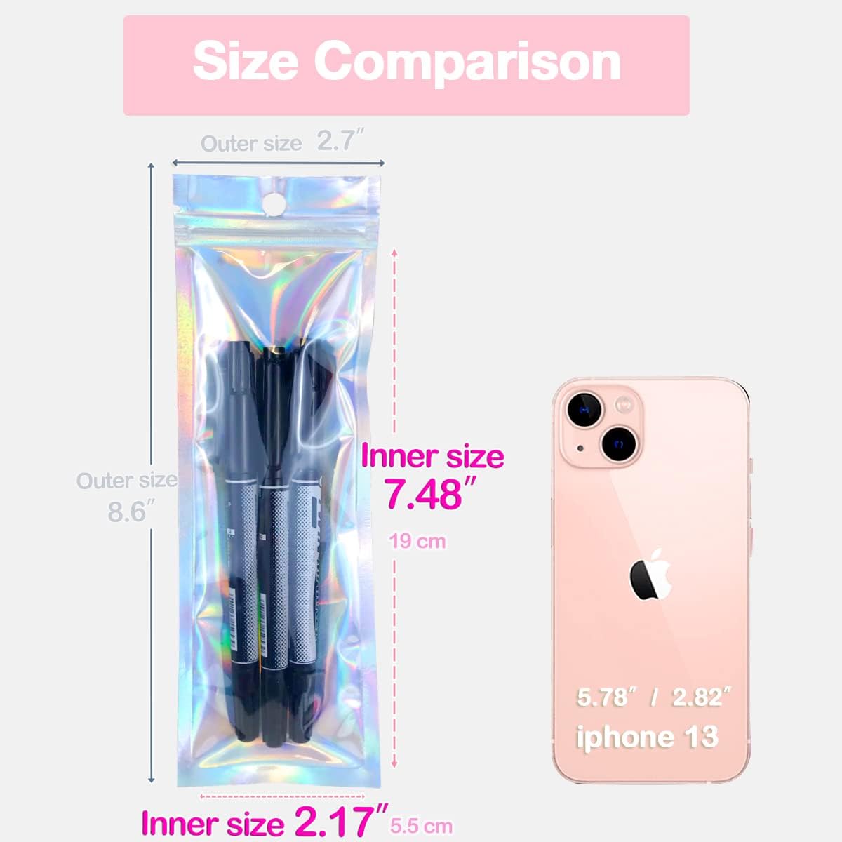 - Holographic Smell Proof Bags With Sealing Strip & Tear Giudes - These aluminum foil bags with self sealing strip is designed to keep your items clean, safe and organized. Resealable bags are easy to seal. These resealable pouches have two tear giudes on the top, you can tear holographic bags quickly and easily with them. These clear plastic bags also support heat sealed.