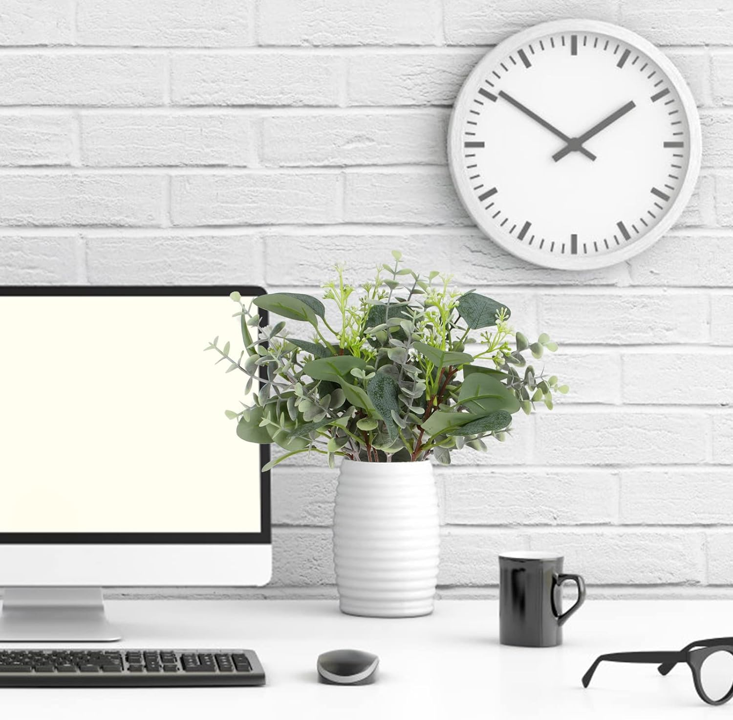 - [Size]: The artificial eucalyptus leaf stem is 11 inches (approximately 27 cm) high and 5.5 inches (approximately 14 cm) wide.
