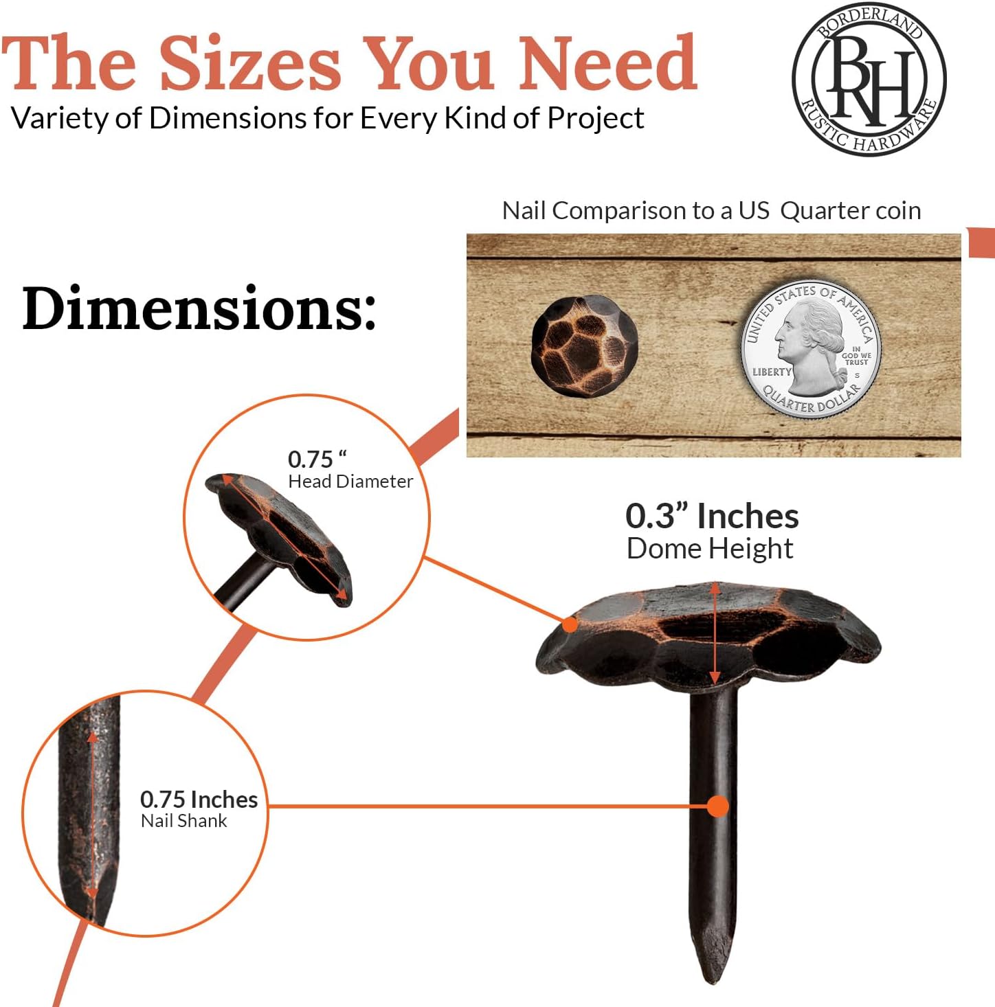 10 Pack 0.75" Round Head Iron Clavos Decorative Nails – Oil Rubbed Bronze – Handmade Rustic Round Fasteners for Farmhouse Shutters, Faux Wood, Barn Doors, Shutters, Gates – Ornamental Wood Accent