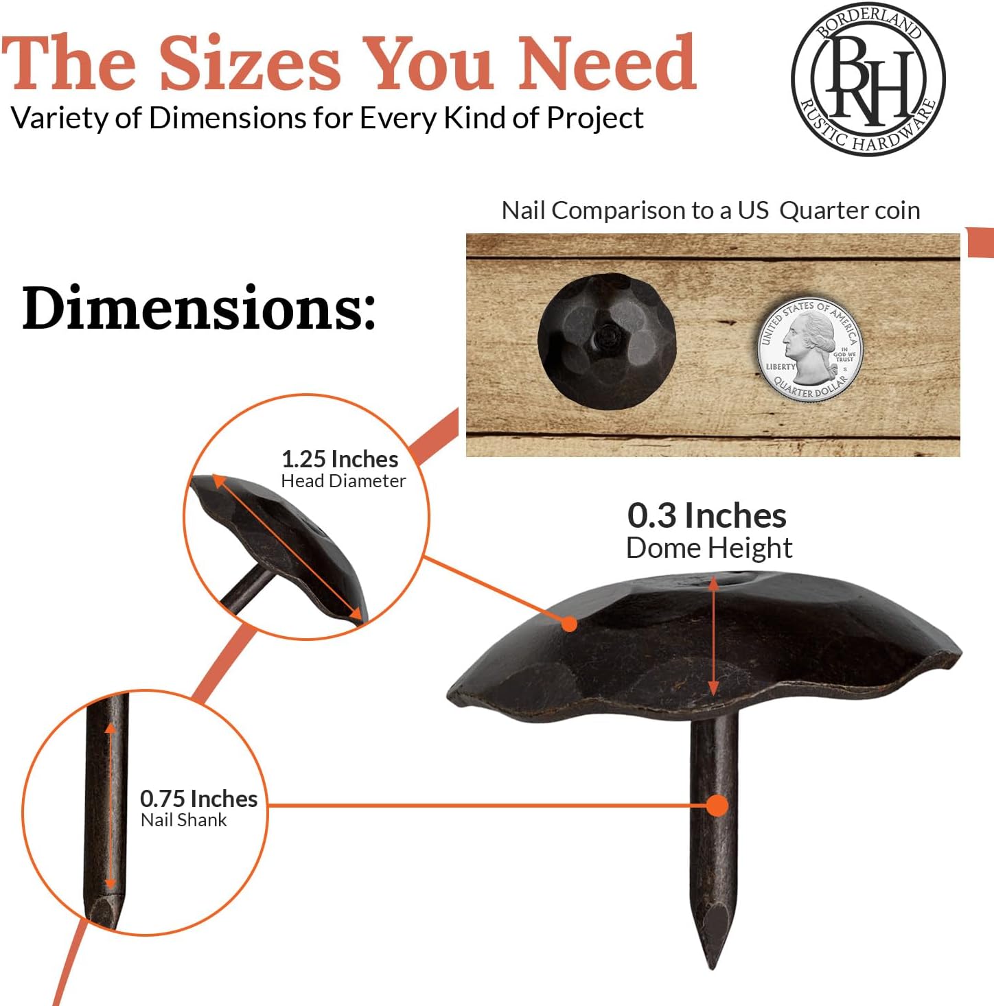 10 Pack 1.25" Round Head Iron Clavos Decorative Nails – Sealed Unfinished – Handmade Rustic Round Fasteners for Farmhouse Shutters, Faux Wood, Barn Doors, Shutters, Gates – Ornamental Wood Accent