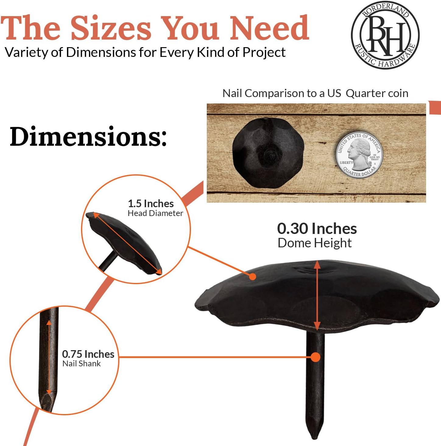 10 Pack 1.5" Round Head Iron Clavos Decorative Nails – Sealed Unfinished – Handmade Rustic Round Fasteners for Farmhouse Shutters, Faux Wood, Barn Doors, Shutters, Gates – Ornamental Wood Accent