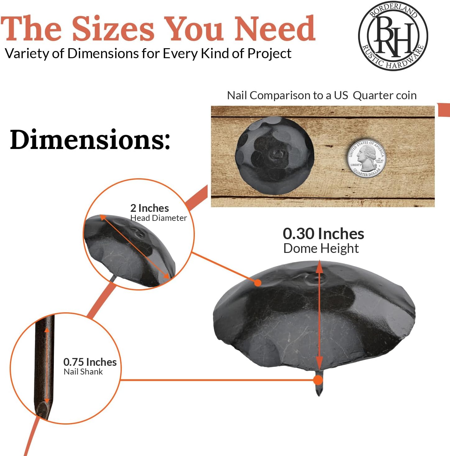 50 Pack 2" Round Head Iron Clavos Decorative Nails – Sealed Unfinished – Handmade Rustic Round Fasteners for Farmhouse Shutters, Faux Wood, Barn Doors, Shutters, Gates – Ornamental Wood Accent