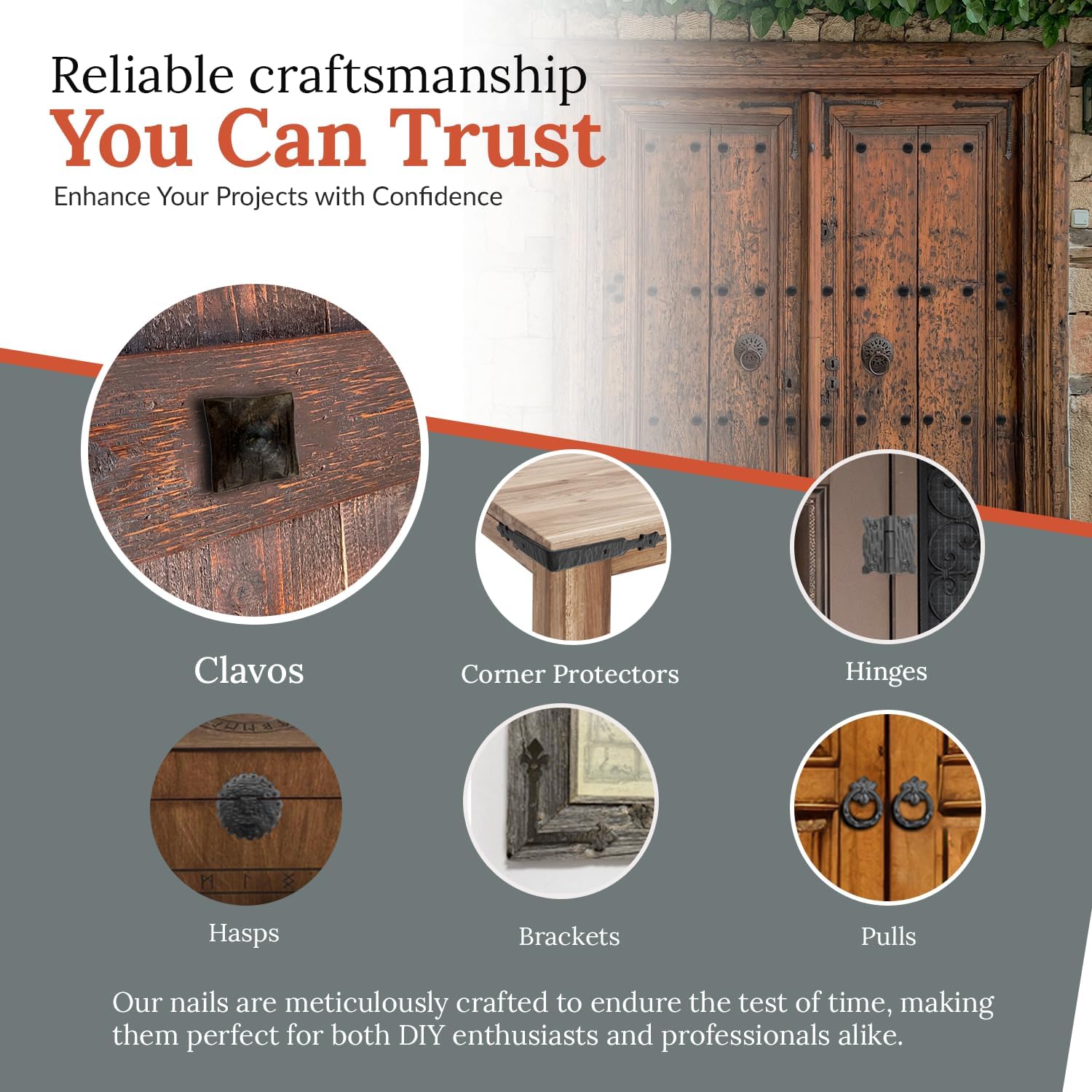 - IDEAL USES: These decorative hardware nails are perfect for a variety of applications, including barn door window shutters, exterior shutters, and faux wood beams. Ideal for upgrading wooden barn doors and farmhouse barn door hardware, they provide both functional and aesthetic enhancements to rustic and traditional projects.