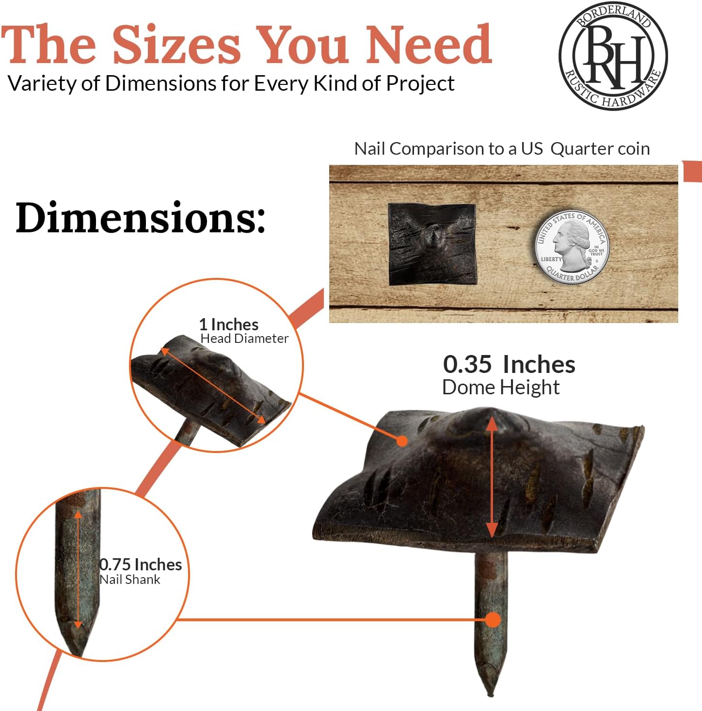 100 Pack 1" Square Head Iron Clavos Decorative Nails – Unfinished – Handmade Rustic Square Fasteners for Farmhouse Shutters, Faux Wood, Barn Doors, Shutters, and Gates – Ornamental Wood Accent