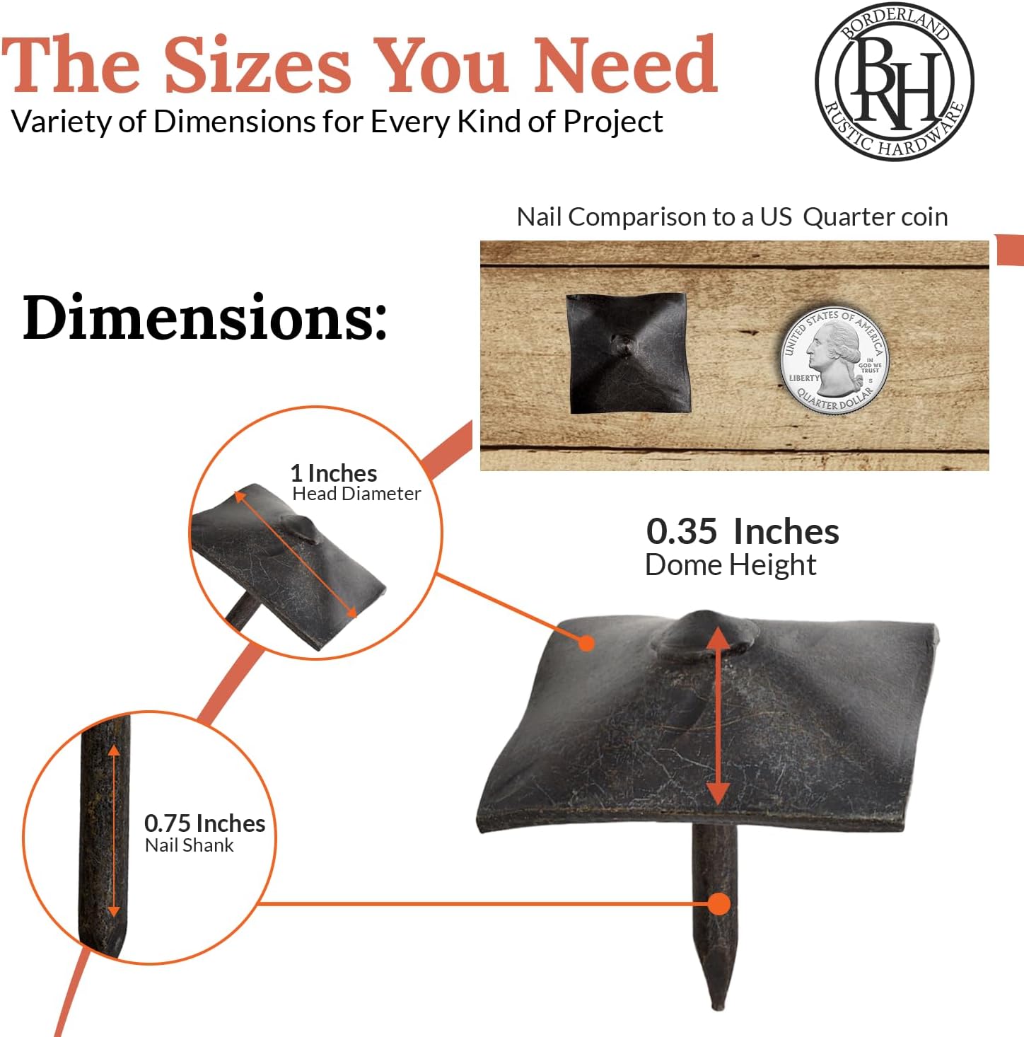 25 Pack 1" Square Head Iron Clavos Decorative Nails – Sealed Unfinished – Handmade Rustic Square Fasteners for Farmhouse Shutters, Barn Doors, Shutters, and Gates – Ornamental Wood Accent