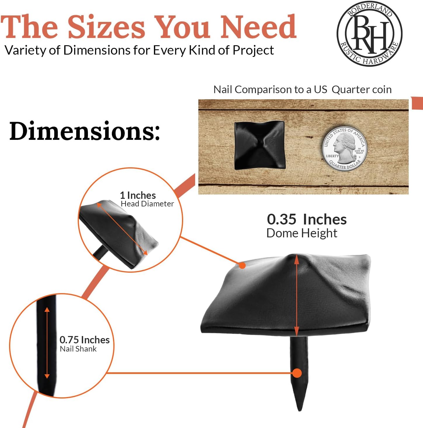 100 Pack 1" Square Head Iron Clavos Decorative Nails – Black – Handmade Rustic Square Fasteners for Farmhouse Shutters, Faux Wood Beams, Barn Doors, Shutters, and Gates – Ornamental Wood Accent