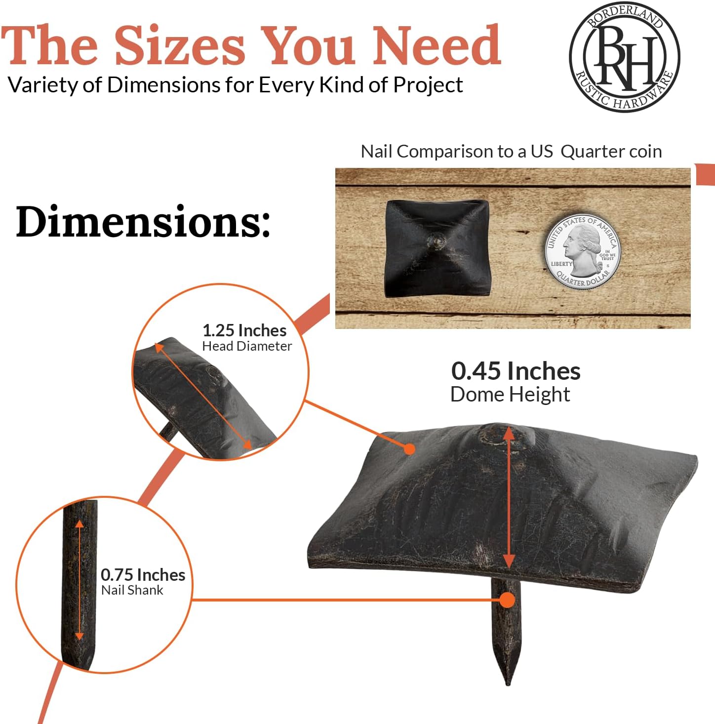 25 Pack 1.25" Square Head Iron Clavos Decorative Nails – Sealed Unfinished – Handmade Rustic Square Fasteners for Farmhouse Shutters, Barn Doors, Shutters, Gates – Ornamental Wood Accent