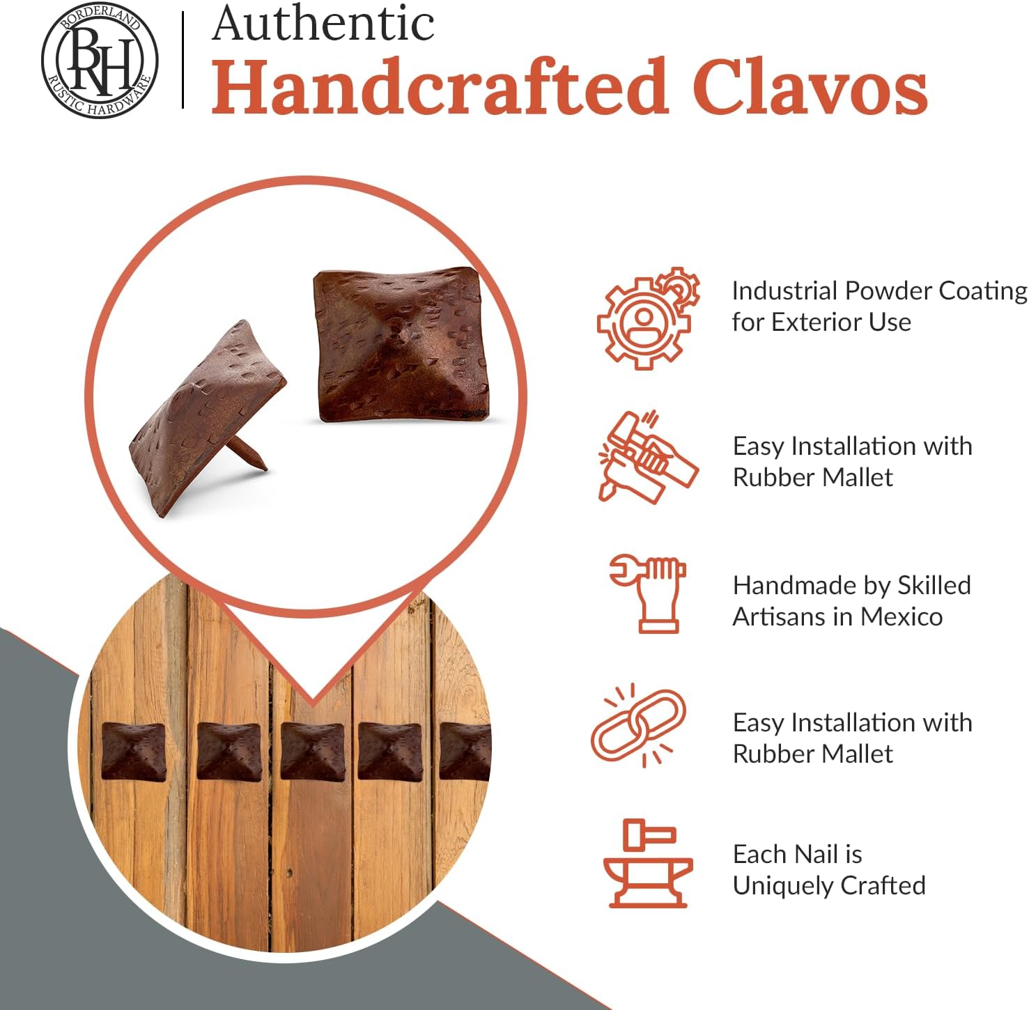 50 Pack 1.5" Square Head Iron Clavos Decorative Nails – Sealed Rusted – Handmade Rustic Square Fasteners for Farmhouse Shutters, Faux Wood, Barn Doors, Shutters, and Gates – Ornamental Wood Accent