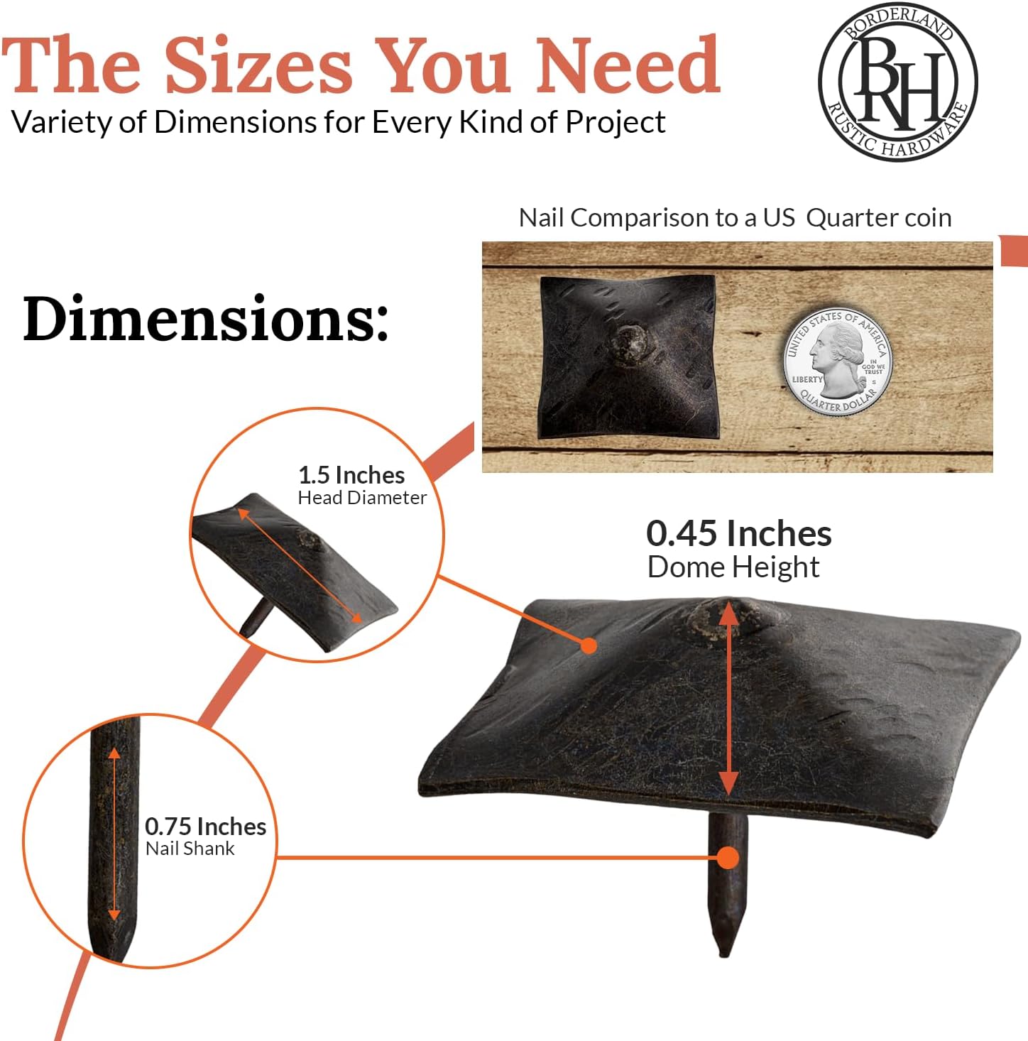 25 Pack 1.5" Square Head Iron Clavos Decorative Nails – Sealed Unfinished – Handmade Rustic Square Fasteners for Farmhouse Shutters, Faux Wood, Barn Doors, Shutters, Gates – Ornamental Wood Accent