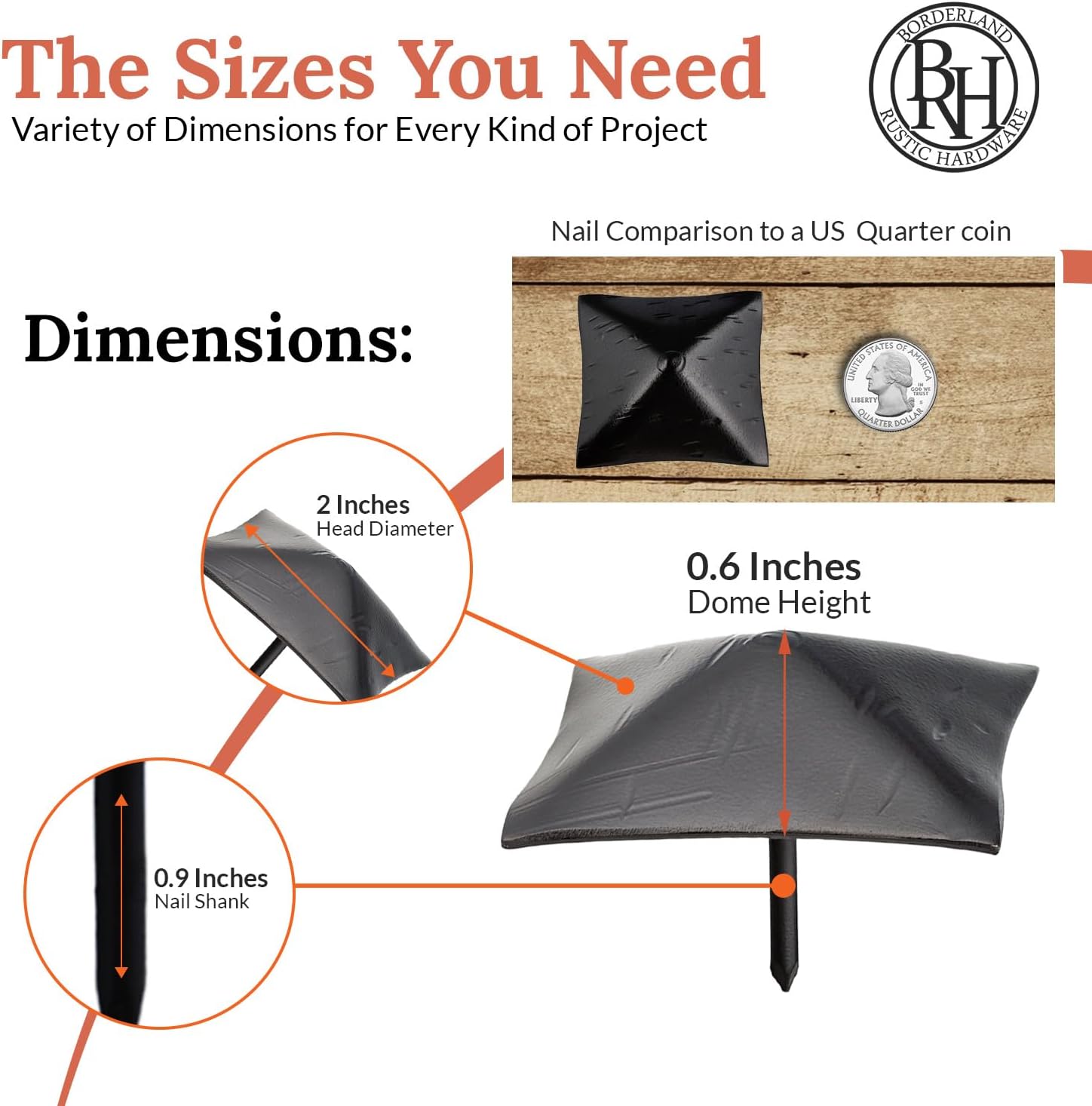10 Pack 2" Square Head Iron Clavos Decorative Nails – Black – Handmade Rustic Square Fasteners for Farmhouse Shutters, Faux Wood Beams, Barn Doors, Shutters, and Gates – Ornamental Wood Accent