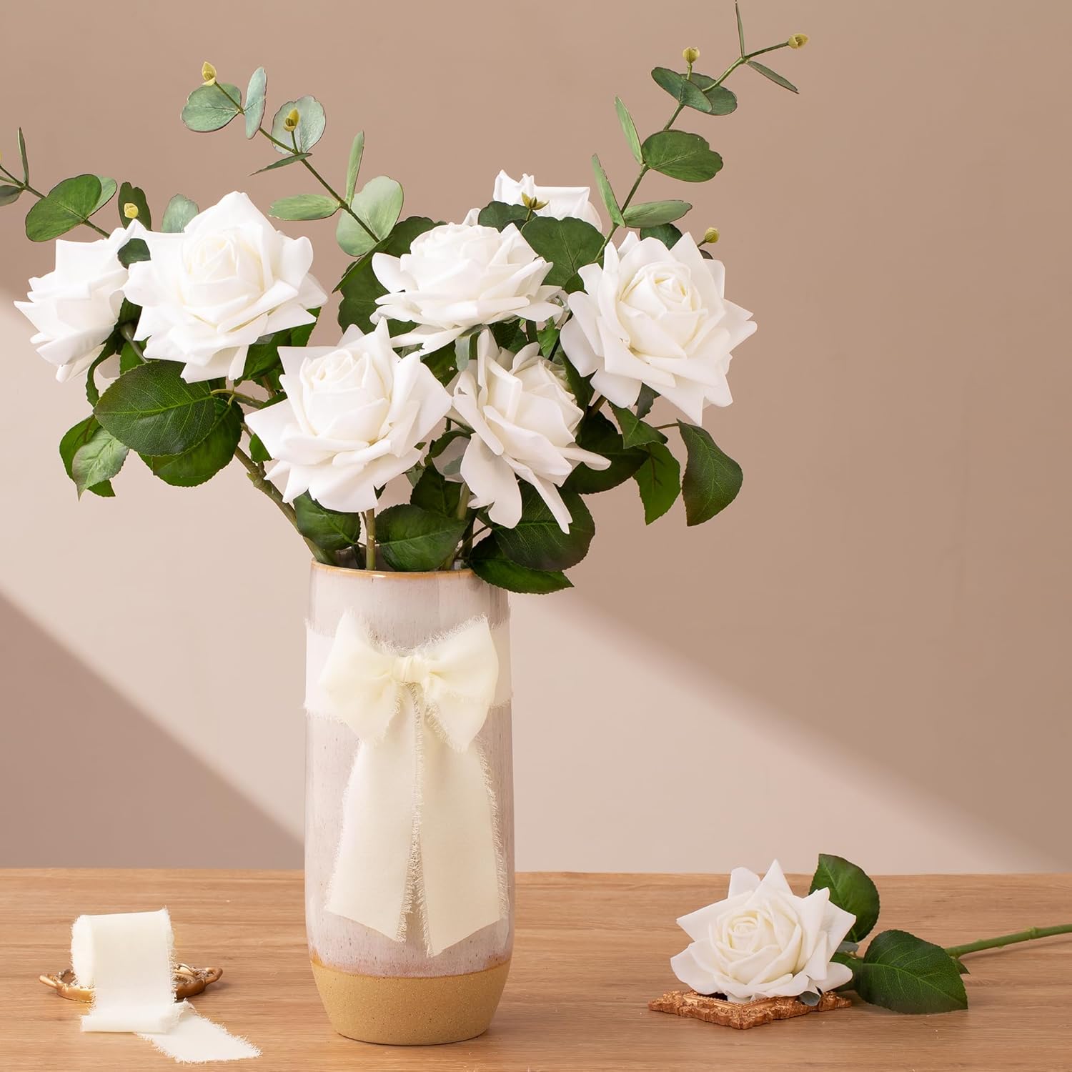 - 【Size and Color】Each roll of chiffon ribbon is 2 inches wide and 7 yards long, perfect for various creative uses such as making bows, decorating wreaths, and DIY crafts. This set includes 3 rolls cream white ribbons. These vibrant frayed ribbons add a rustic charm to your creations, ideal for bouquet wrap or gift ribbon.