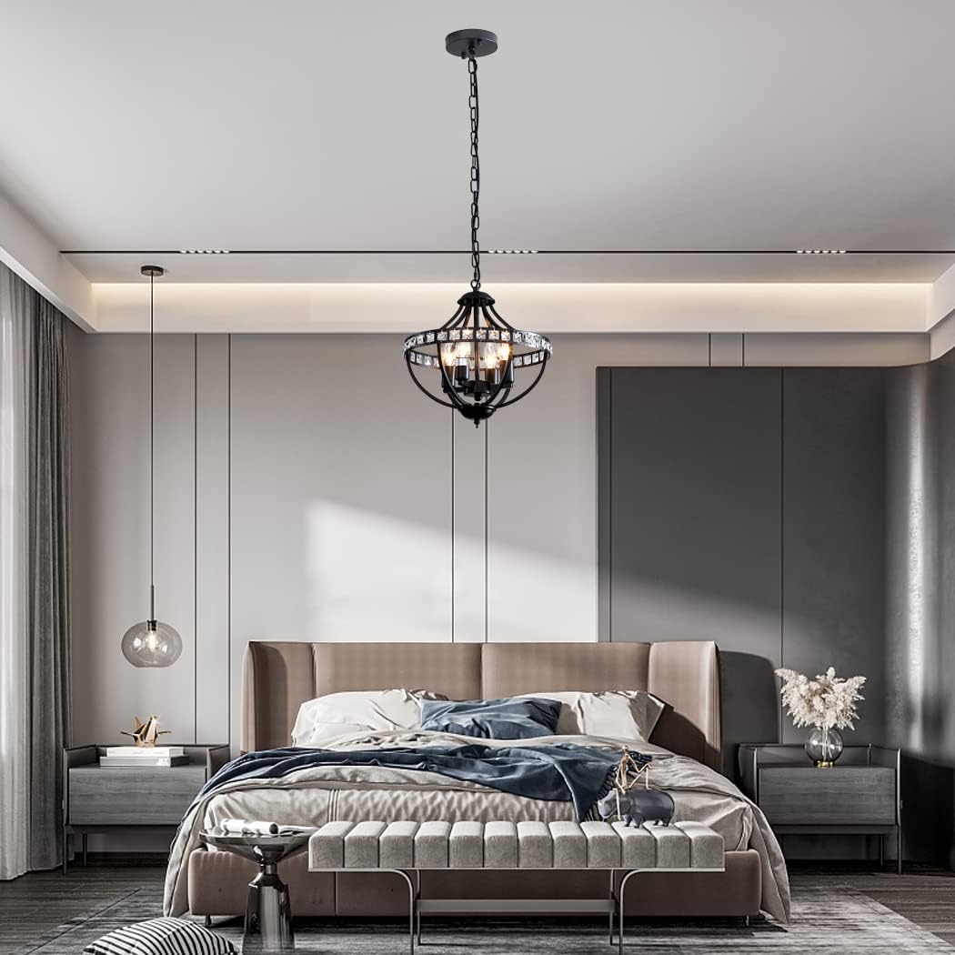 - ☀ Crystal Chandelier: This 4-Light black crystal chandelier is made of iron artisanal finish, features crystal tube is shiny, crystal home decor. It's the focal point of your home renovation, you'll absolutely fall in love with it.features crystal tube is shiny, crystal home decor