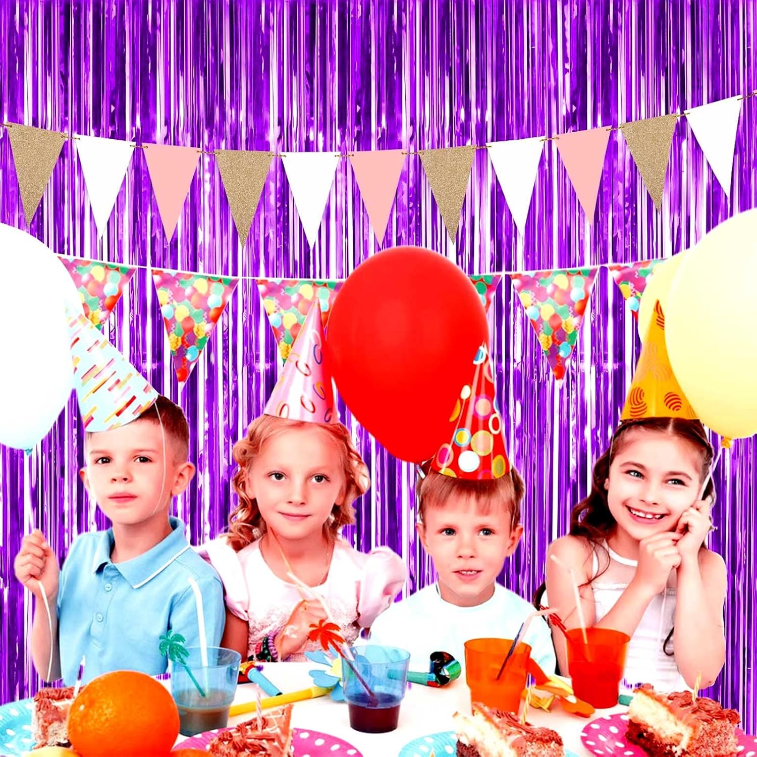 4 Pack Purple Foil Fringe Curtain Backdrop, 3.28Ft x 8.2Ft Metallic Tinsel Foil Fringe Streamer for Party, Photo Booth Props, Birthday, 2022 Graduation Decoration Party Supplies
