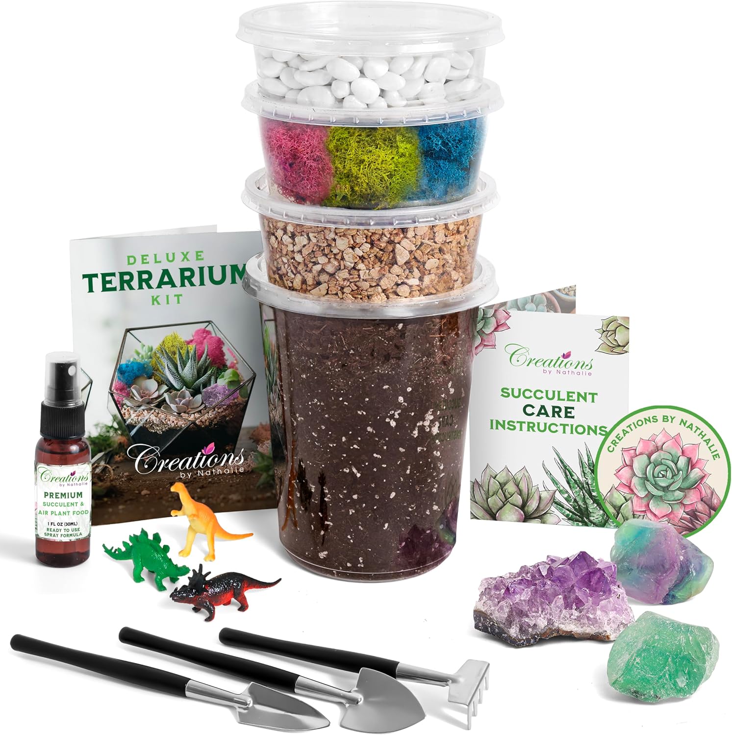 - Included Components : Potting soil with fertilizer, crushed pebbles, crystal gems, gem chips, preserved reindeer moss, terrarium tools, step-by-step and plant care instructions Potting soil with fertilizer, crushed pebbles, crystal gems, gem chips, preserved reindeer moss, terrarium tool… See more