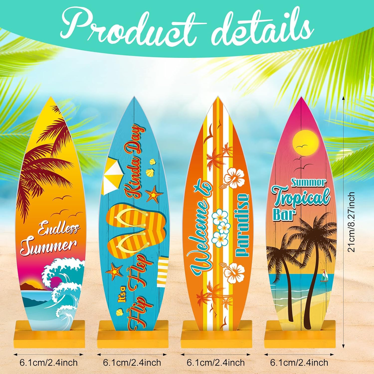 - Surfboard Table Centerpieces Design: this surfboard decoration for wall is a nice accent to any space; It's a better gift for family, friends, and coworkers who love the beach life; Wooden surfboard decorations will create a strong beach party atmosphere